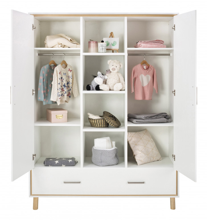 Cette belle armoire est parfaite pour optimiser le rangement la chambre de votre enfant. Faite en bois MDF sur des pieds en hêtre massif, elle est solide et apportera une touche de douceur à la déco grâce à l' association du blanc et du bois clair.