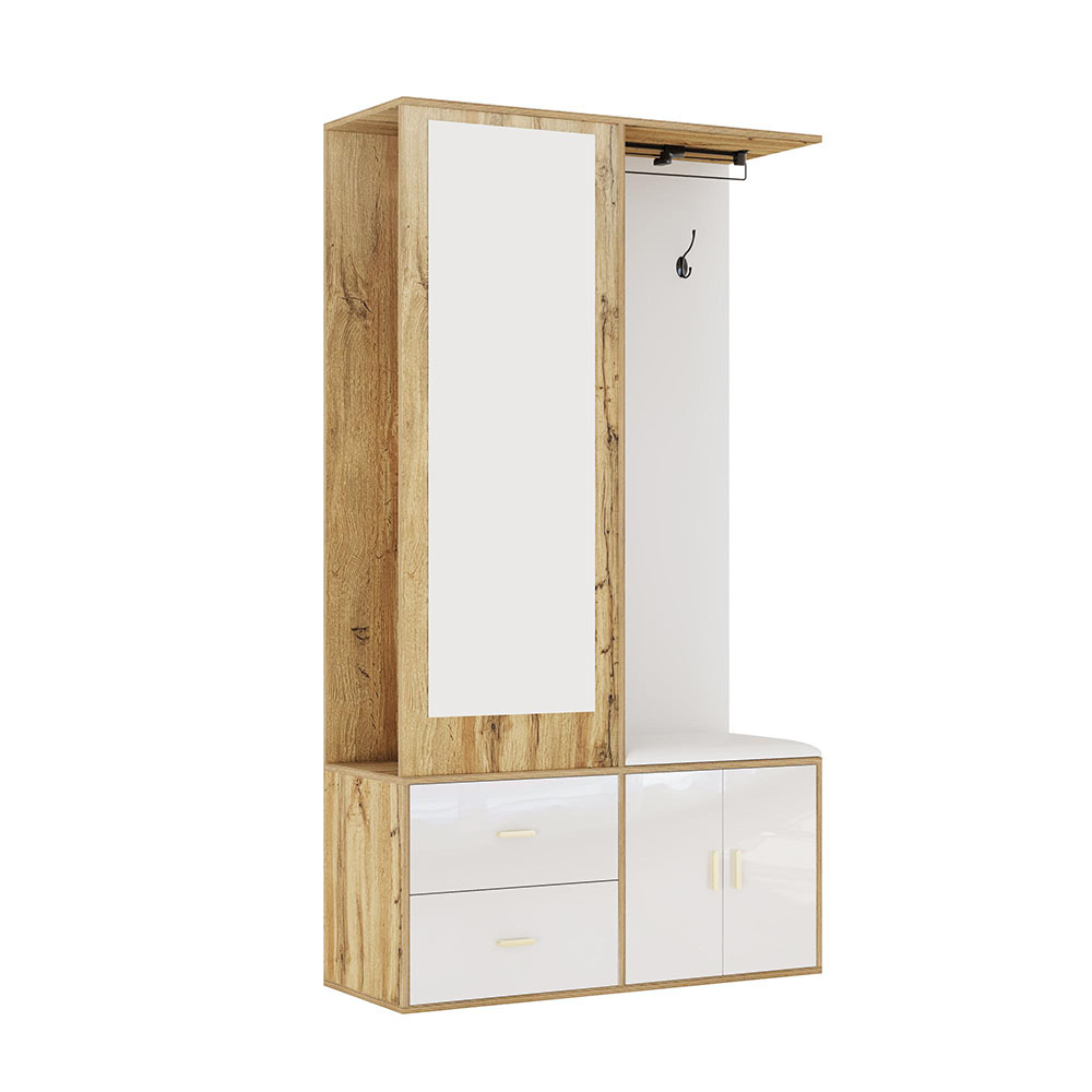 | Libellé | Armoire, blanche et bois d'origine, avec miroir, armoire à chaussures, banc à chaussures et cintres |