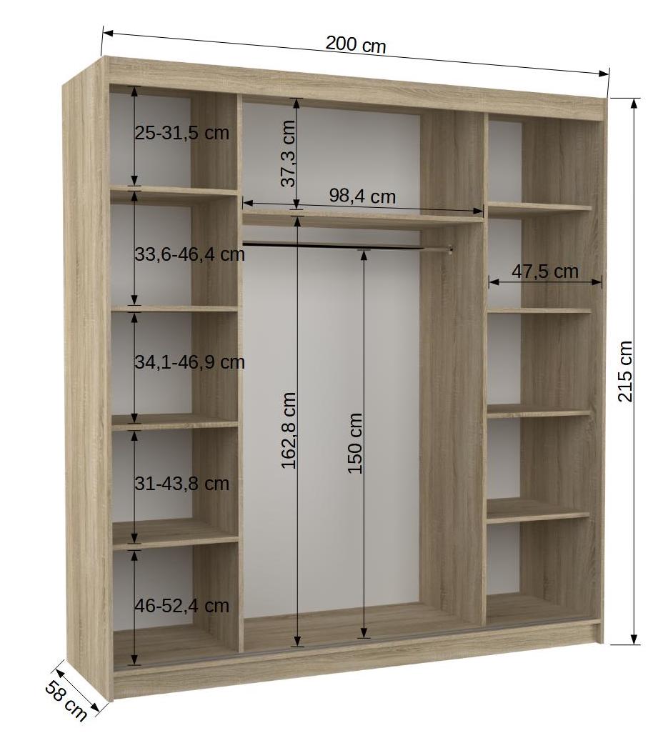 | Libellé | Armoire chambre adulte 2 portes coulissantes bois blanc et artisan avec miroir Zafa 200cm |