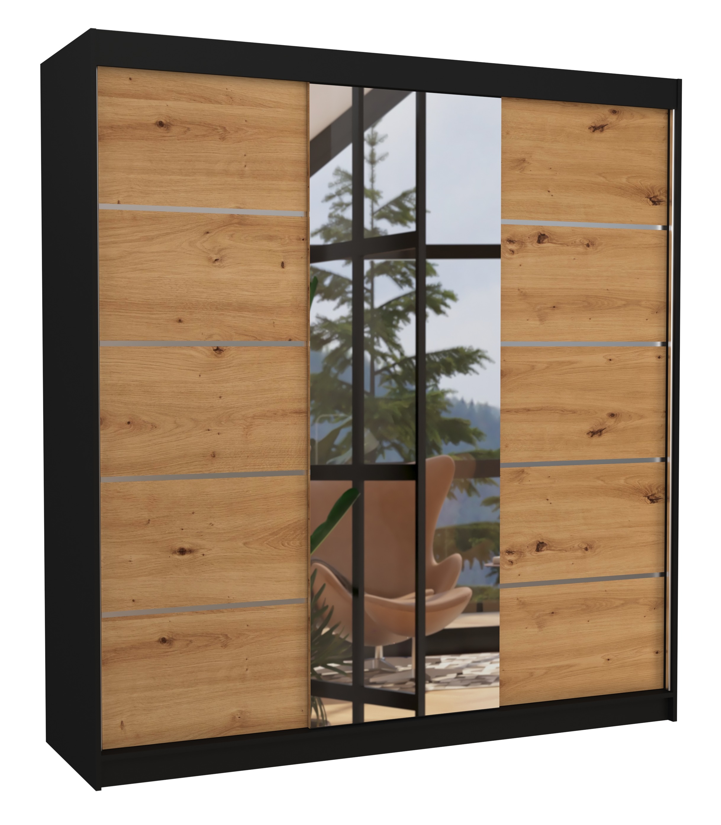 | Libellé | Armoire chambre adulte 2 portes coulissantes bois noir et bois artisan avec miroir Baker 200cm |