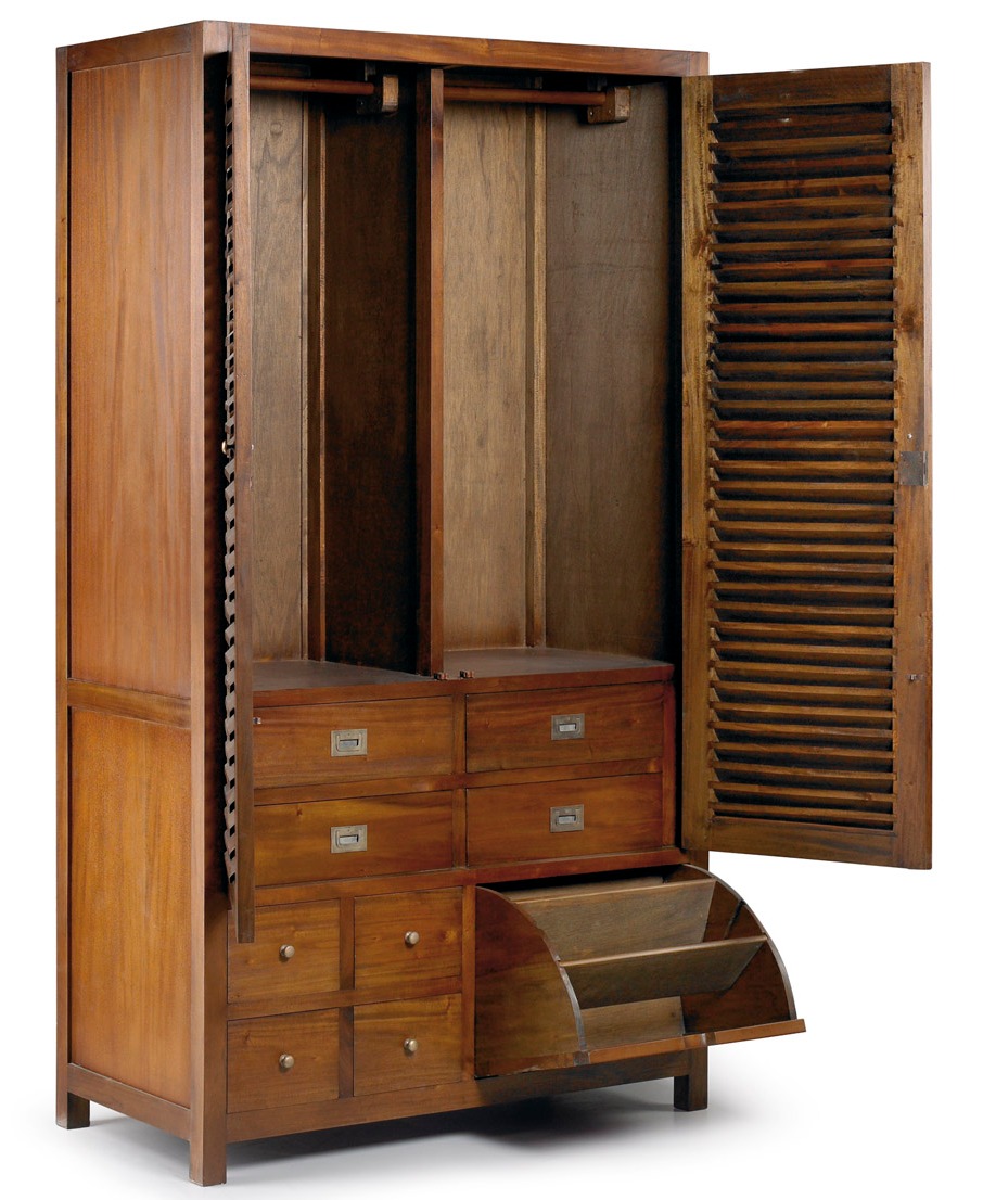 Armoire coloniale 2 portes persiennes 8 tiroirs en bois d'acajou massif Falkane 108cm