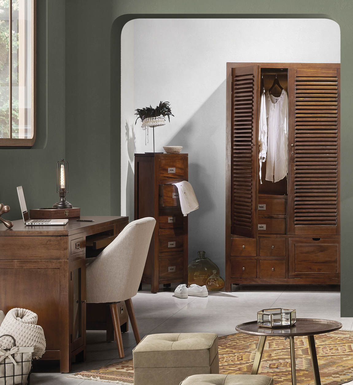 Armoire avec placard à chaussures incluse dans la collection Falkane. Fabriquée à la main en bois d'acajou et des accessoires en bronze. La structure est en bois massif. Elle dispose de 8 tiroirs, d'un porte-chaussures et de deux barres pour suspendre les vêtements. Aucun assemblage requis. Dimensions: L 108 x H 200 x P 50 cm Matériau : bois d'acajou massif Poignée: métal bronze Nombre de tiroir(s) : 8 Nombre de porte(s) : 2 Coloris : marron Usage : intérieur Fabrication artisanale : Espagne Garantie : 5 ans Assemblage : livré monté