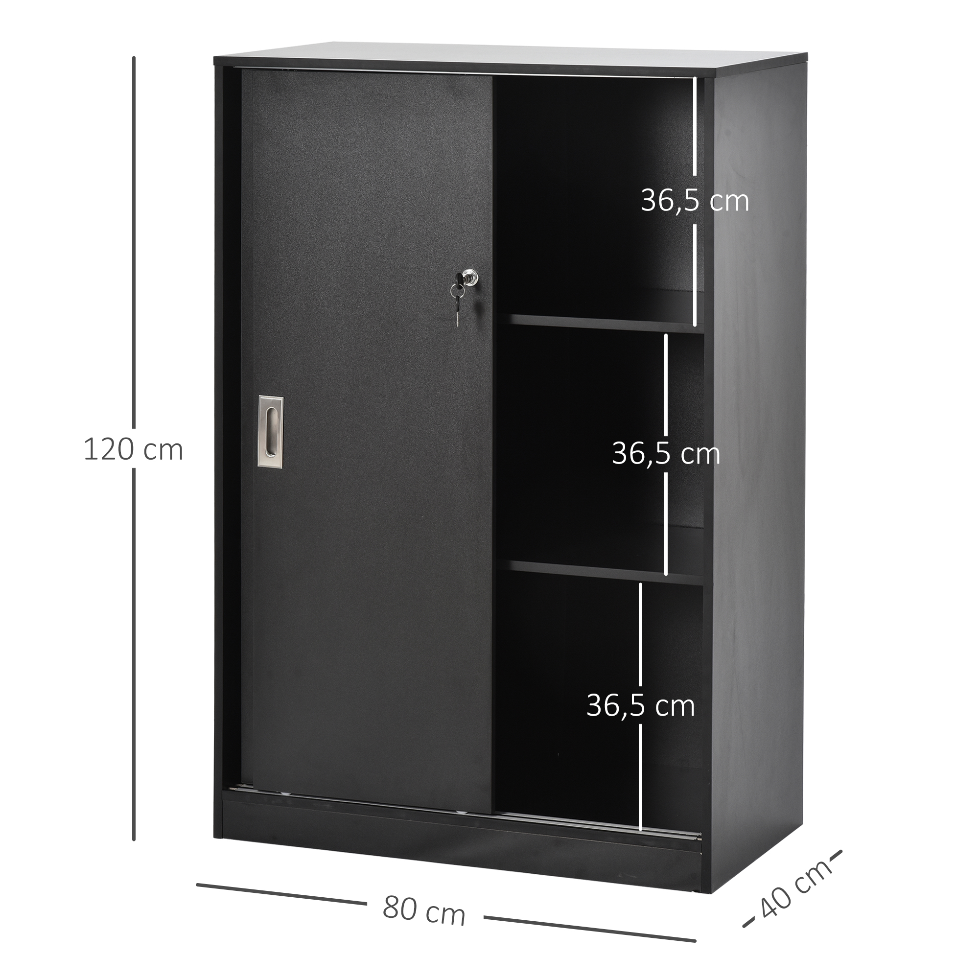 | Libellé | Armoire de bureau 2 portes coulissantes verrouillables dim. 80L x 40l x 120H cm 2 étagères panneaux particules noir |
