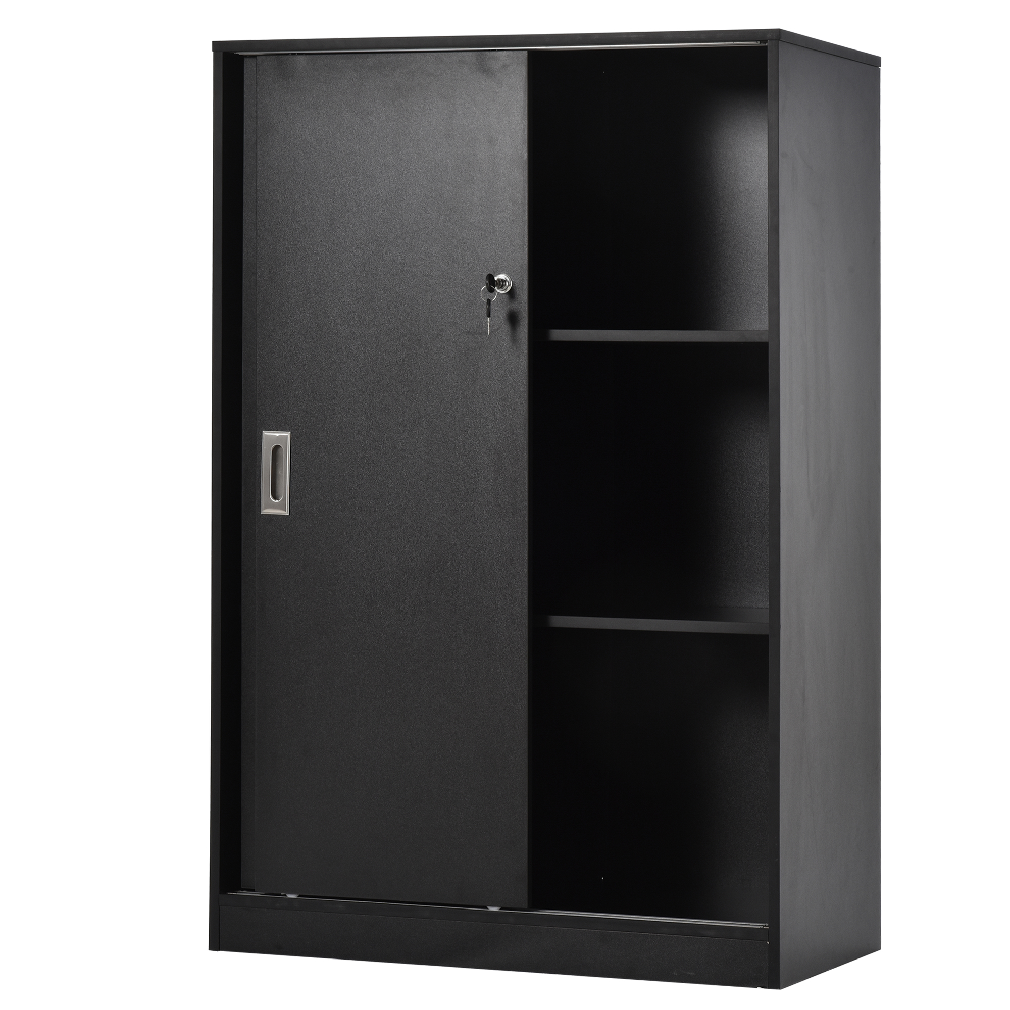 - Armoire sécurisée double portes coulissantes verrouillables (2 clés fournies) : idéale pour le rangement de vos dossiers, documents, et autres affaires de bureau