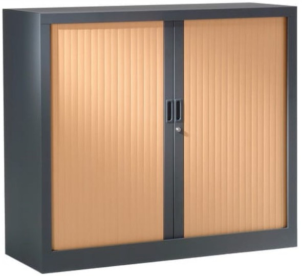 Armoire de bureau à rideaux anthracite 2 portes coulissantes hêtre Klass L90xH100xP45