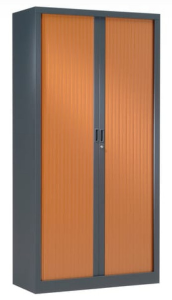 Armoire de bureau à rideaux anthracite 2 portes coulissantes merisier Klass L90xH180xP43