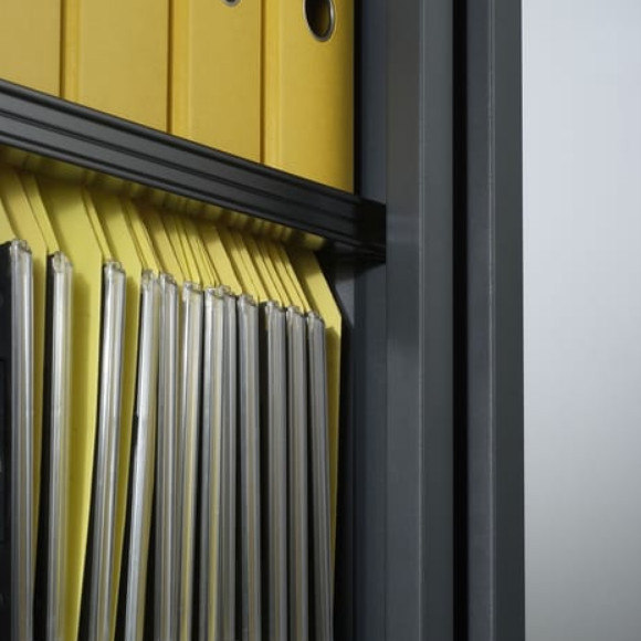 Cette sublime armoire de bureau à rideaux monobloc anthracite de la gamme Klass d'une hauteur de 180 cm allie robustesse, fonctionnalité et sécurité. Elle est équipée de rideaux qui vous assure discrétion et sécurité grâce à sa fermeture à clé. Sa structure est faite de métal et les rideaux en PVC merisier. Cette armoire démontable monobloc 2 portes coulissantes à rideaux revêtues d'époxy et lames de PVC avec des ouvertures latérales sera Idéale pour ranger et classer vos dossiers et documents divers. Munie de 3 tablettes noires, réglables en hauteur et permettant d'insérer des dossiers suspendus, cette armoire monobloc est livrée montée. La charge maximum supportée par tablette est de 110kg. L 90 x H 180 x P 43 cm - 50 kg Structure métallique Poignées encastrées Rideaux à lamelles polypropylène 30 mm.Coulissement silencieux des rideaux. Ouverture Latérale 3 étagères réglables tous les 3 cm avec des taquets en acier Conçu pour des cartons, messagerie, stockage de dossiers suspendus Sécurité de vos documents assurée par la fermeture en 3 points. 2 clés numérotées dont 1 pliante. Serrure à crochet montée sur une lame en acier Garantie 2 ans - Fabrication Française