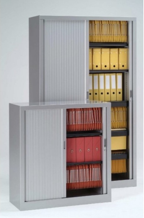 Armoire de bureau à rideaux gris 2 portes coulissantes Klass L90xH180xP43