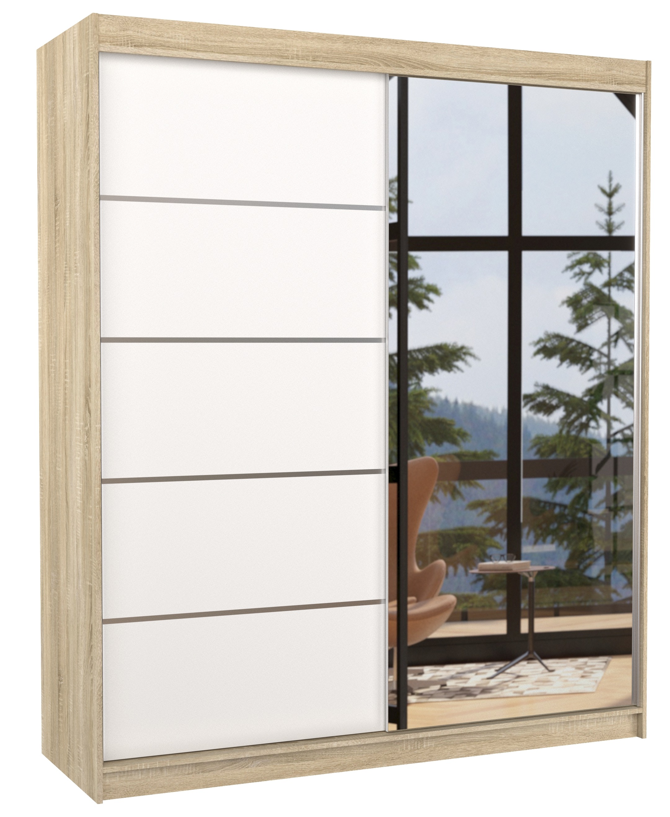 | Libellé | Armoire de chambre design bois clair 2 portes coulissantes bois blanc et alu avec miroir Karena 180cm |