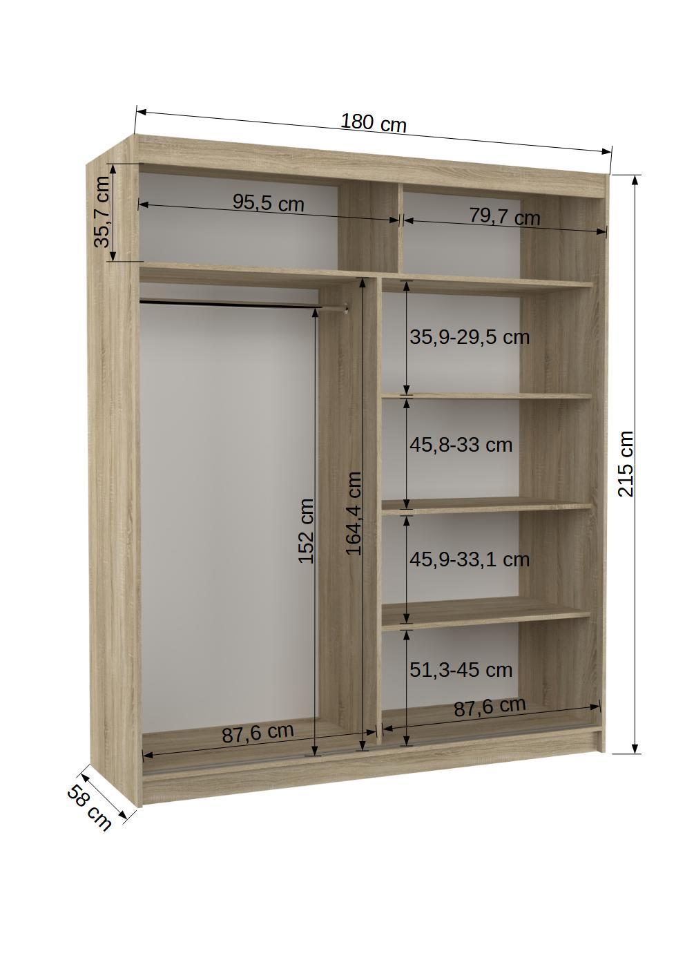 Notre armoire de chambre bois clair de la gamme Karena est présentée avec deux portes coulissantes en bois blanc mat et alu avec une porte en miroir. L'intérieur est proposé avec des étagères réglables et des compartiments pratiques avec penderie, Fabriquée en Europe avec des matériaux de qualité supérieure garantie 5 ans. Coloris : Blanc et bois clair Dimension :L 180 x H 200 x P 58 cm Matière(s) Façade(s) : Bois blanc mat, aluminium et Miroir Nombre de porte(s) : 2 coulissantes - Système d'enroulement Aménagement intérieur : Penderie et étagères réglables Poignées : Aluminium Poids : 143 Kg Corps : Panneau laminé de 16 mm bois clair Casiers et étagères : panneau mélaminé 16 mm bois clair Garantie : 5 ans Fabrication : Européenne Assemblage : A monter - Livrée avec notice de montage Nombre de colis : 3 - 1.220x10x60 2.200x6x90 3.91x51x5 cm