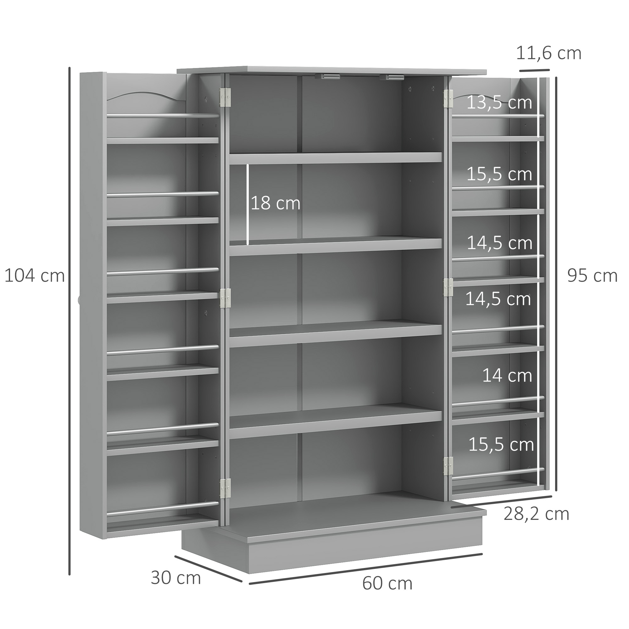 Armoire de cuisine rangement épices 2 portes 4 étagères 12 porte-épices dim. 60 x 30 x 104 cm gris