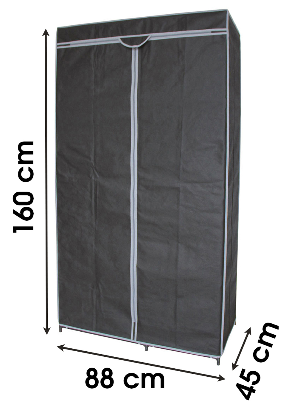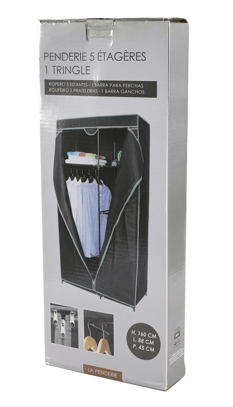 Optez pour cette armoire de rangement penderie dressing pour ranger tous vos vêtements de manière organisée et pratique. Avec ses cinq étagères et sa barre de penderie, cette armoire est idéale pour compléter votre dressing. La housse en polypropylène respirante protège vos vêtements de la poussière et des mites. Facile à monter, cette armoire est légère et peut être utilisée dans la chambre à coucher, la cave ou le grenier. Les compartiments permettent de ranger pantalons, pulls, chemises et blouses, tandis que les chaussures, sacs et écharpes sont rangés de manière claire et nette. La structure robuste assure une stabilité optimale. Dimensions : 88x45xH160cm. Garantie légale de conformité de 2 ans.