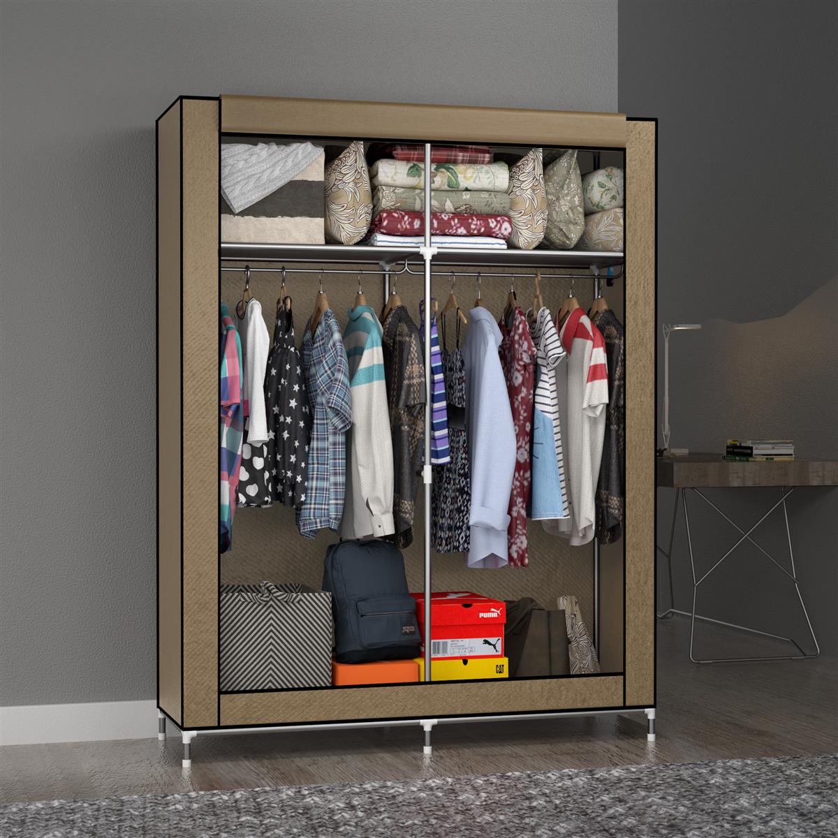 Armoire de Rangement Pliable 108x170x45 cm en CRÈME BEIGE - Penderie Dressing Textile en Tissu Intissé av