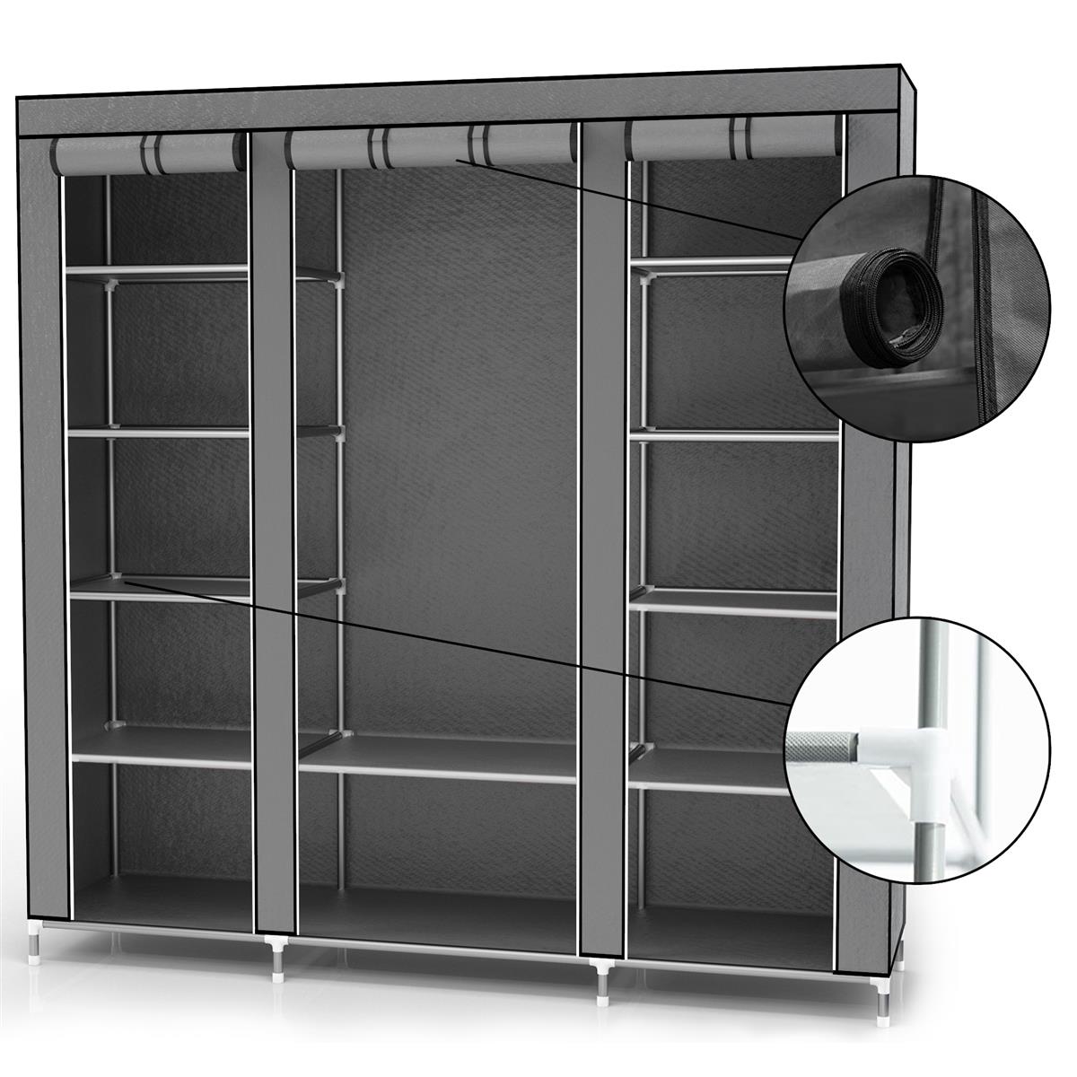 Armoire de Rangement Pliable 150x175x45 cm en GRIS CENDRE - Penderie Dressing Textile en Tissu Intissé av