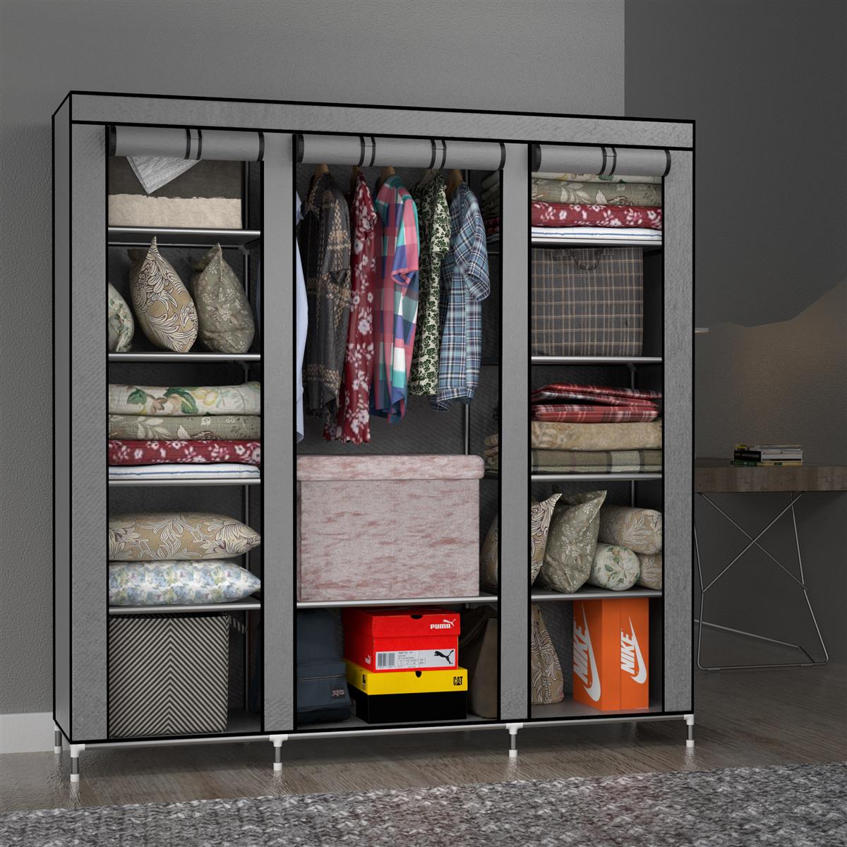 | Libellé | Armoire de Rangement Pliable 150x175x45 cm en GRIS CENDRE - Penderie Dressing Textile en Tissu Intissé avec Fermeture à Glissière - Garde-Robe Placar |