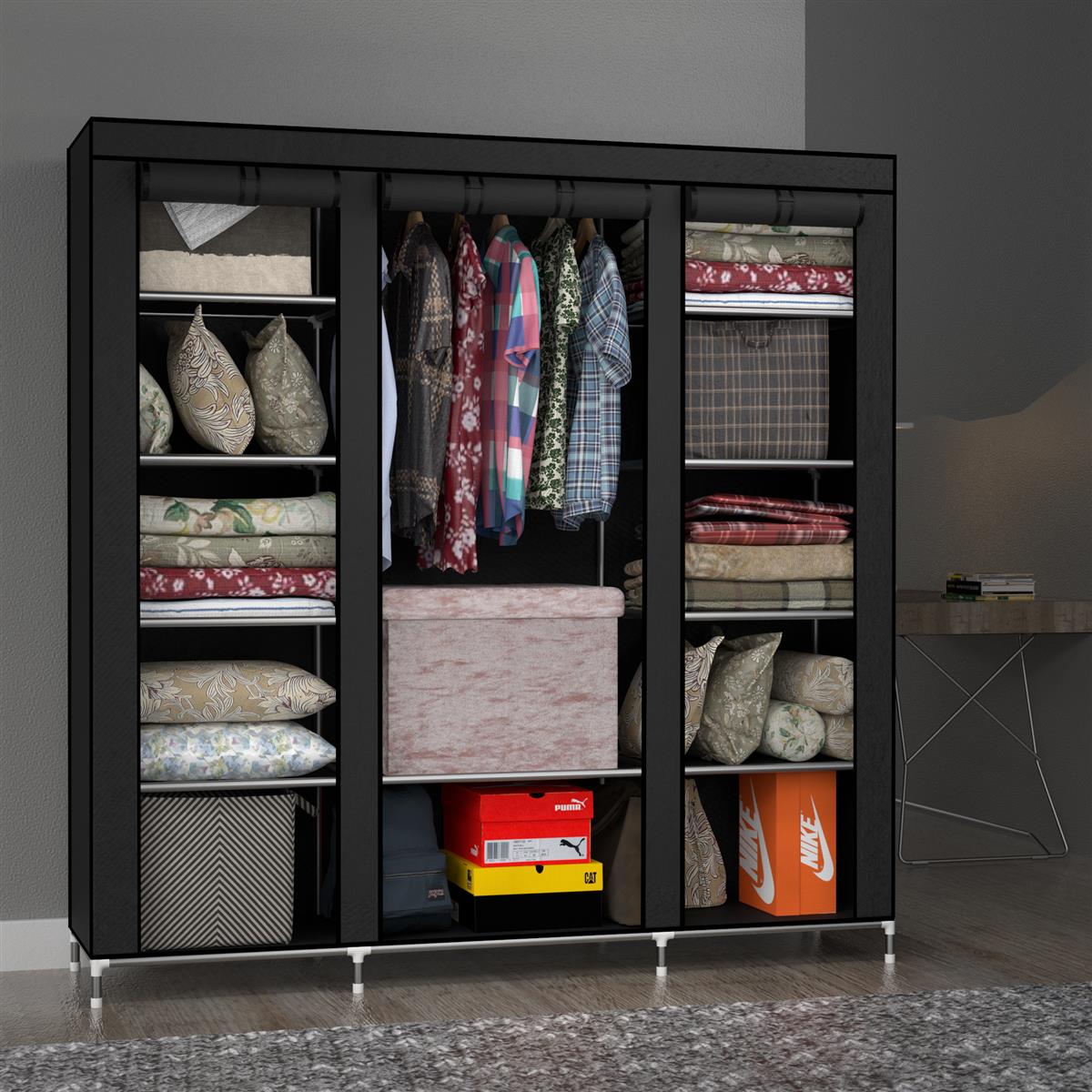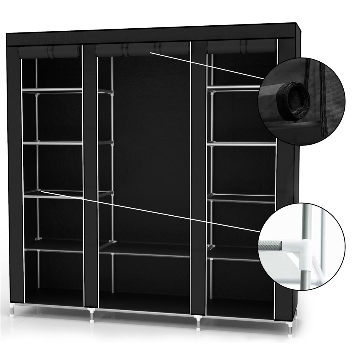 Armoire de Rangement Pliable 150x175x45 cm en NOIR CORBEAU - Penderie Dressing Textile en Tissu Intissé a
