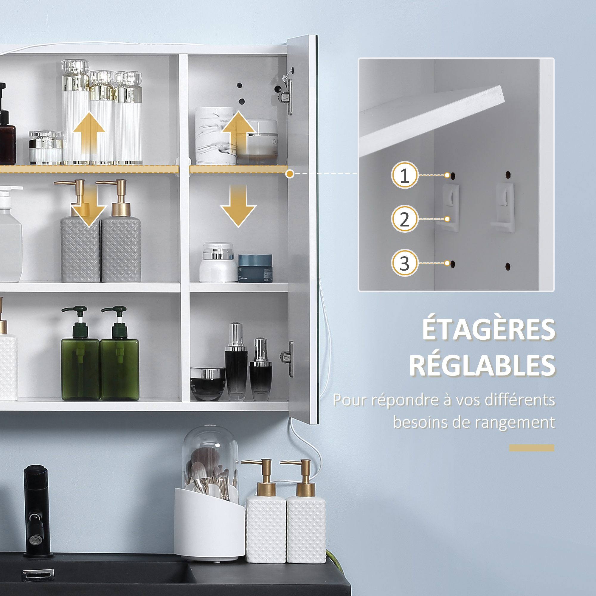 Armoire de toilette miroir lumineux LED 2 portes 3 niv. blanc