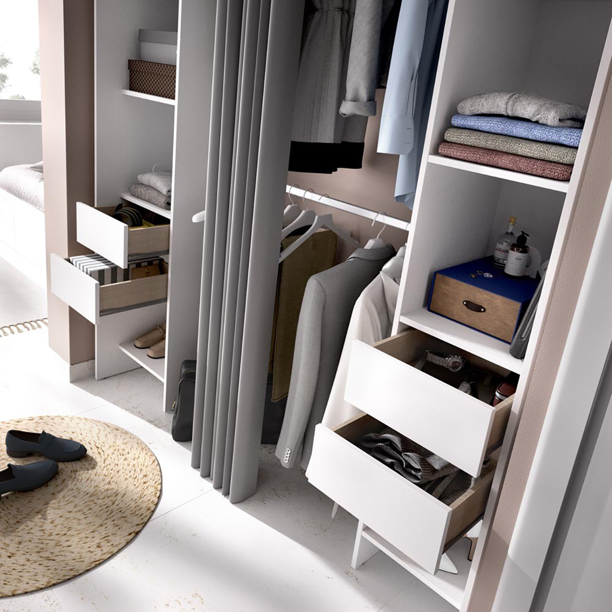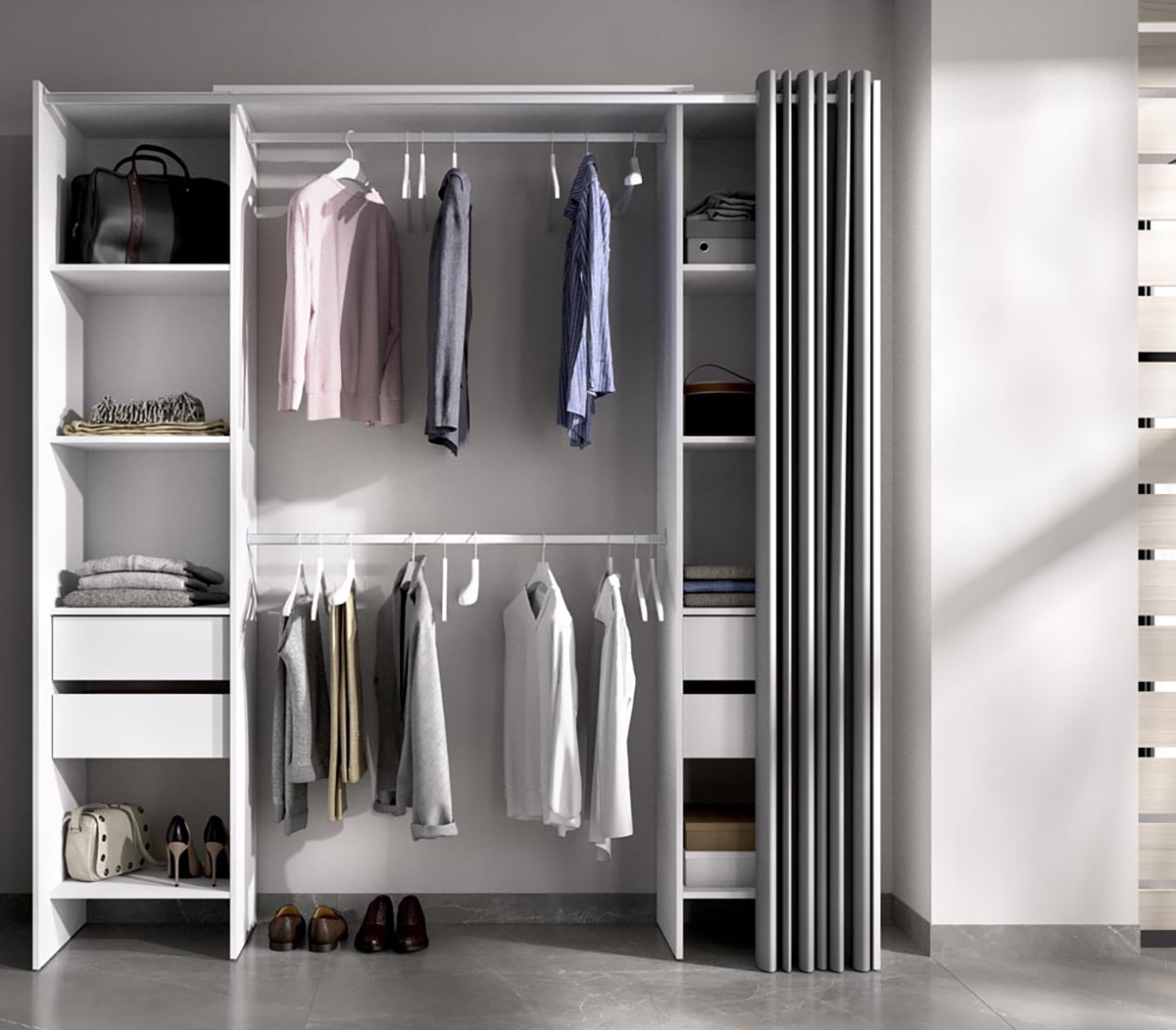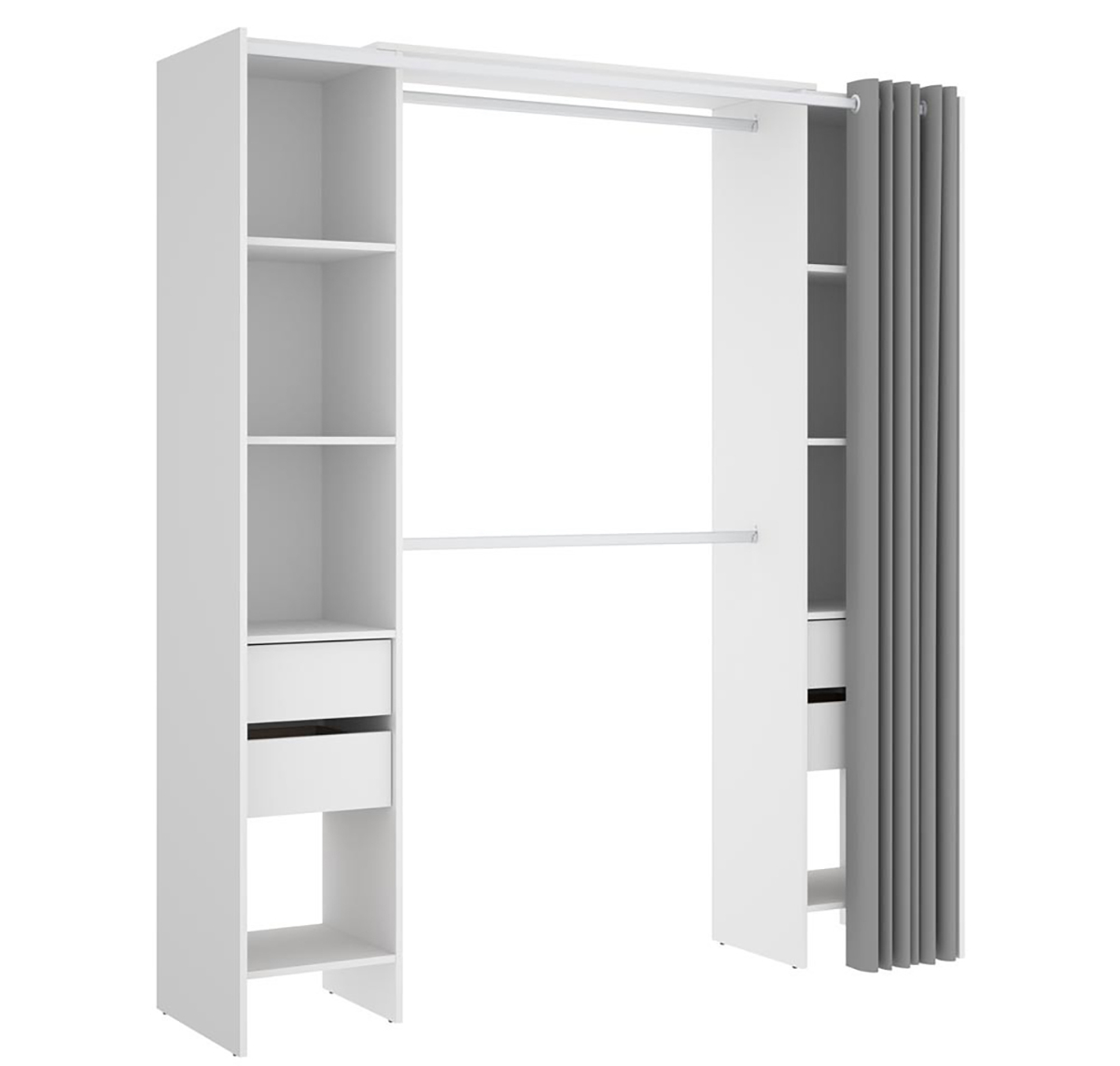 | Libellé | Armoire dressing extensible avec rideau + 4 tiroirs coloris blanc - Longueur 100-180 x Hauteur 203 x Profondeur 50 cm |