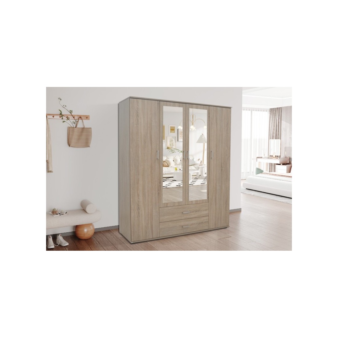 Armoire, garde-robe, avec miroir collection TOM, 4 portes 160 cm, penderie intégrée chêne sonoma
