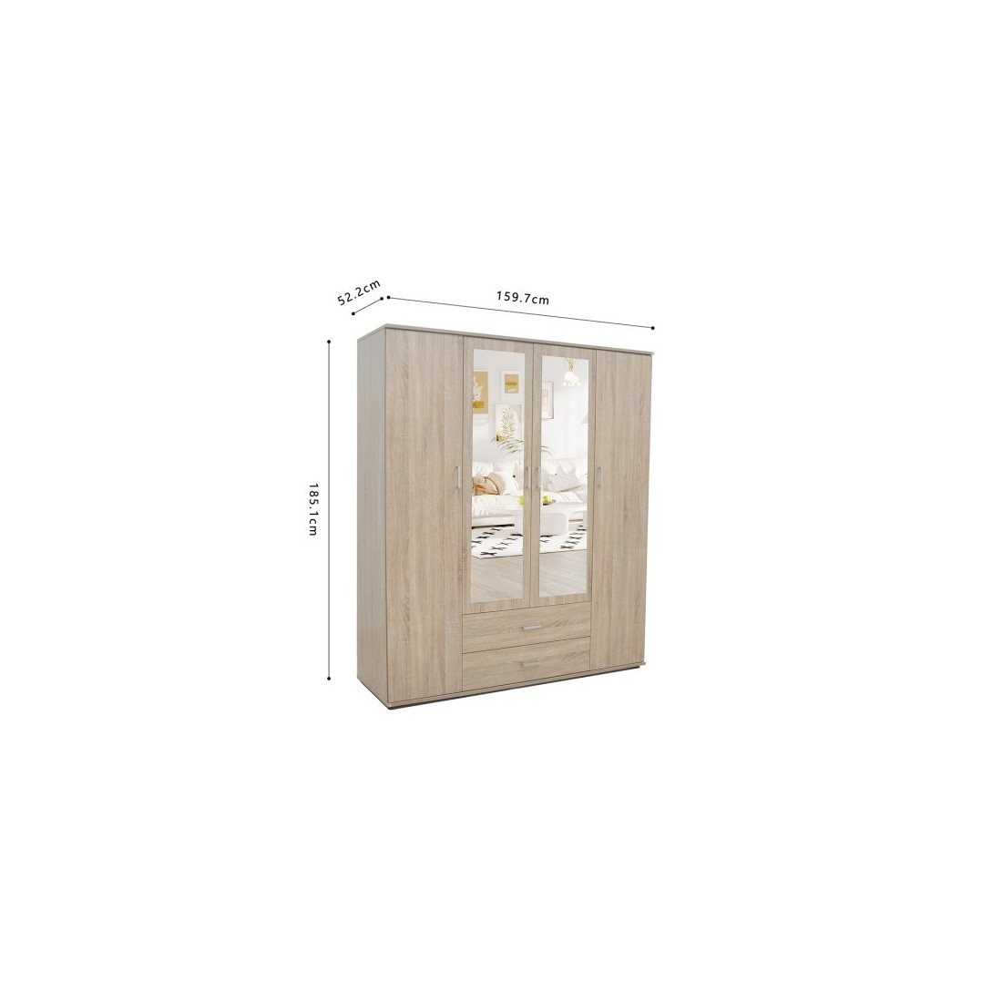 | Libellé | Armoire, garde-robe, avec miroir collection TOM, 4 portes 160 cm, penderie intégrée chêne sonoma |