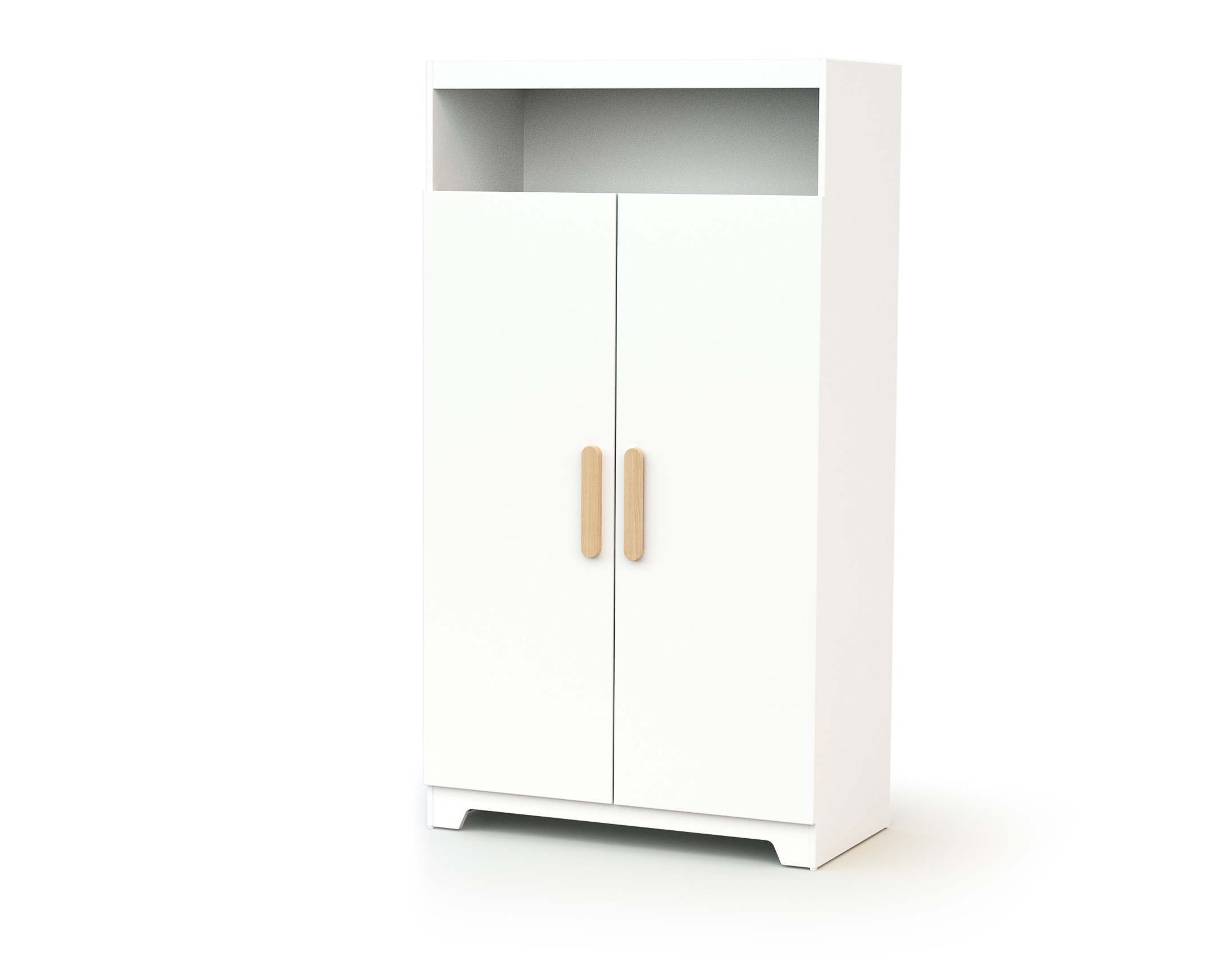 Armoire deux portes et une niche. Une belle armoire alliant un design sobre et un look scandinave doux et accueillant. Un savant mélange de blanc et de bois verni et ses lignes arrondies lui donnent un style ludique et chaleureux pour une chambre accueillante.