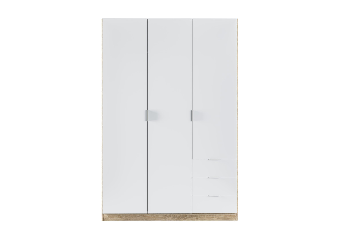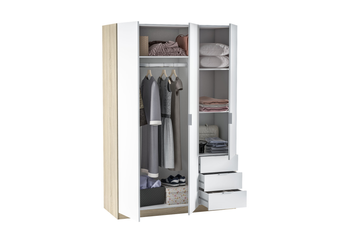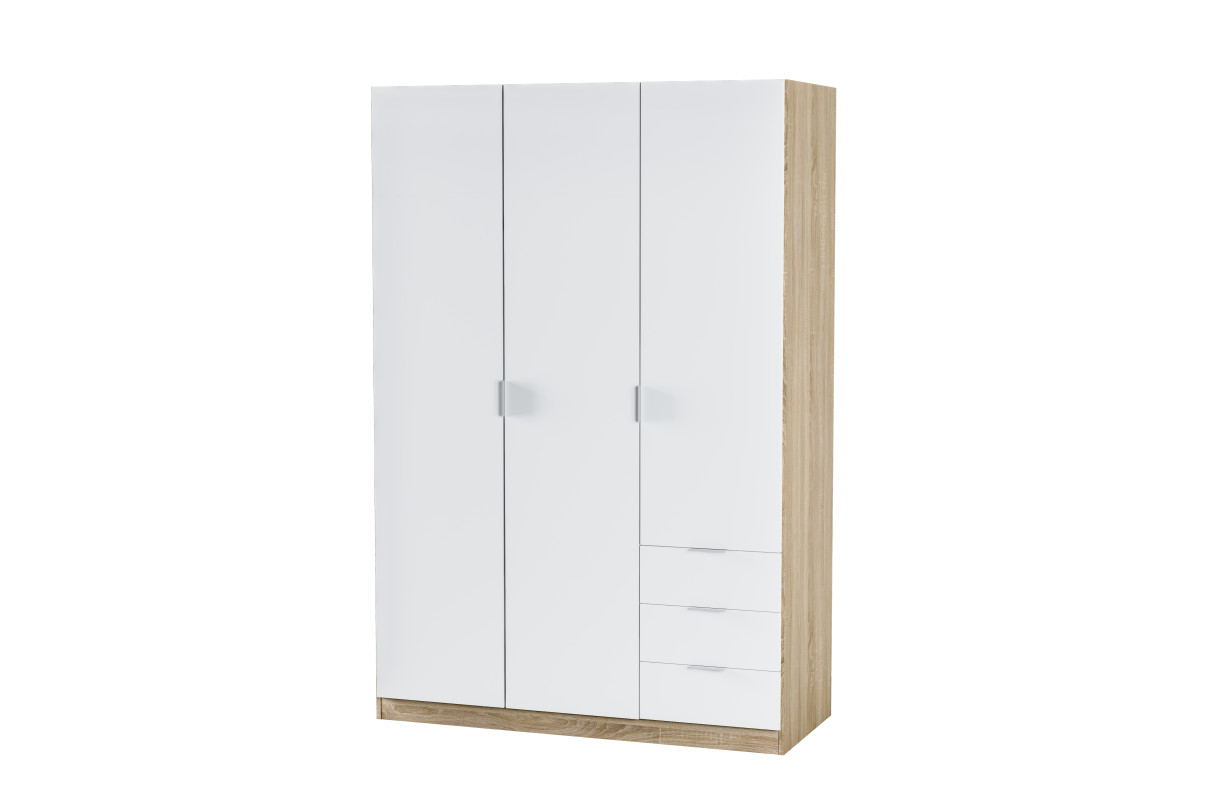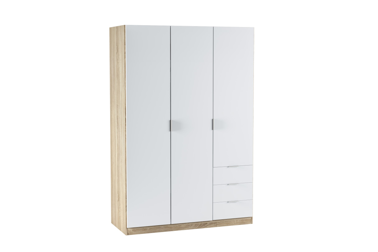 Armoire NINA 3 portes et 3 tiroirs L121 x H180 cm - Blanc et bois