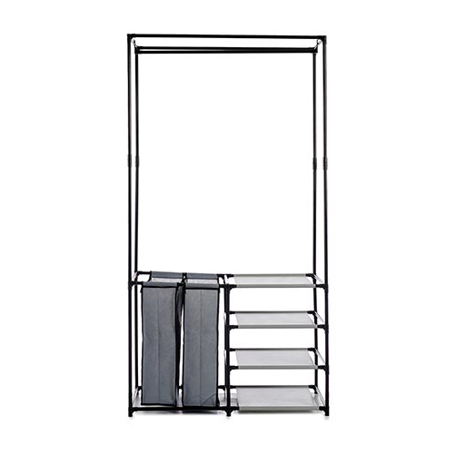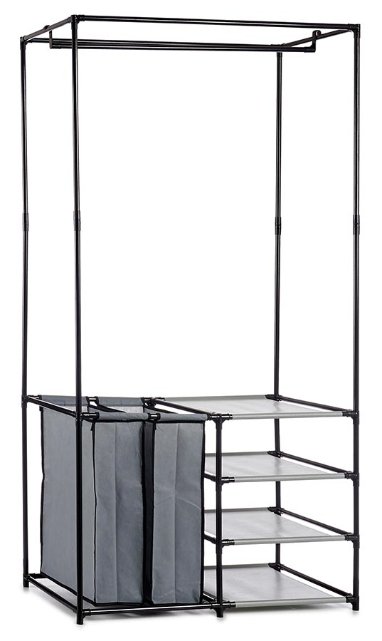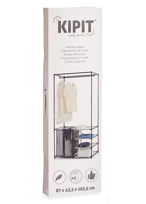 Cette armoire penderie de rangement est l'accessoire idéal pour compléter votre dressing. Elle est équipée d'une barre de penderie et de 4 étagères avec panier pour ranger et ordonner vos vêtements. Sa structure robuste assure une grande stabilité. Très légère et facile à monter, cette armoire est parfaite pour ranger vos vêtements dans la chambre à coucher, la salle de bain, la cave ou le grenier. Elle est composée de 4 étagères avec panier pour ranger vos pantalons, pulls et autres pièces de vêtements, tandis que les chemises et blouses peuvent être suspendues à la tringle à vêtements. Les chaussures, sacs et écharpes peuvent également être rangés de manière claire et nette dans cette armoire de voyage pratique. Avec ses dimensions de 87x43,5x163,5cm et son poids de 2,47 kg, cette armoire penderie est facile à déplacer et à installer. Elle est de couleur noire et de style industriel, convient aux adultes et est fabriquée en Europe à partir de matériaux métalliques de qualité.
