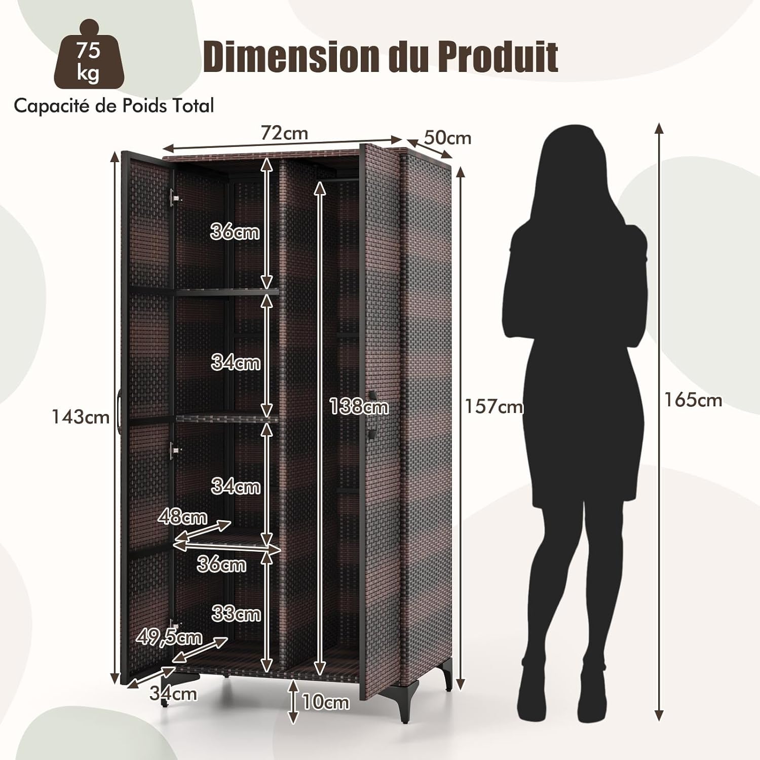 | Libellé | Armoire penderie exterieur en osier 4 cubes de rangement, tige de suspension,armoire de rangement marron |