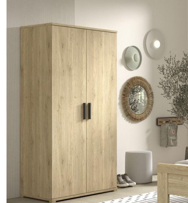 L'armoire 2 portes de la collection polyvalente SAM est la solution idéale pour ceux qui recherchent des meubles modernes, élégants et pratiques. Avec son aspect bois chaleureux, ses poignées en métal noir et son design minimaliste, cette armoire convient parfaitement aux enfants comme aux adolescents. Fabriquée à partir de matériaux durables, elle est conçue pour résister à l?usure quotidienne et durer de nombreuses années. L'armoire offre un espace de rangement généreux avec deux étagères et une tringle à vêtements.