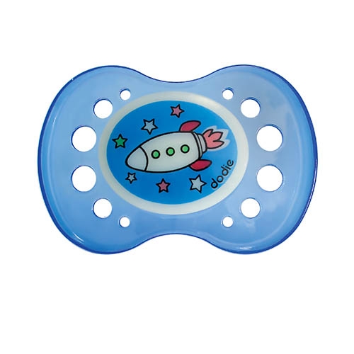 Sucette +18 mois anatomique en silicone nuit de Dodie: -Trous de ventilation , réduisant les risques d'irritation -Bouton phosphorescent, pour retrouver facilement retrouver la sucette pendant la nuit -Téterelle nervurée pour une resistance accrue à l'arrivée des première dents -Forme anatomique (ou symétrique), réversible pour une bonne position garantie -Un bouclier en tritan, confortable et léger pour un maintien en bouche facile