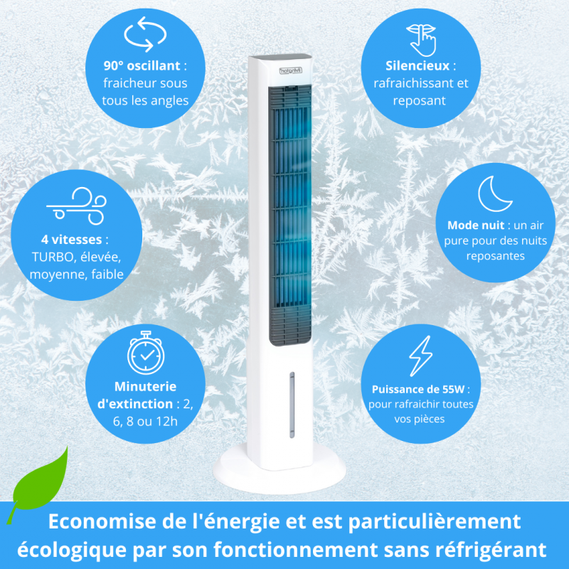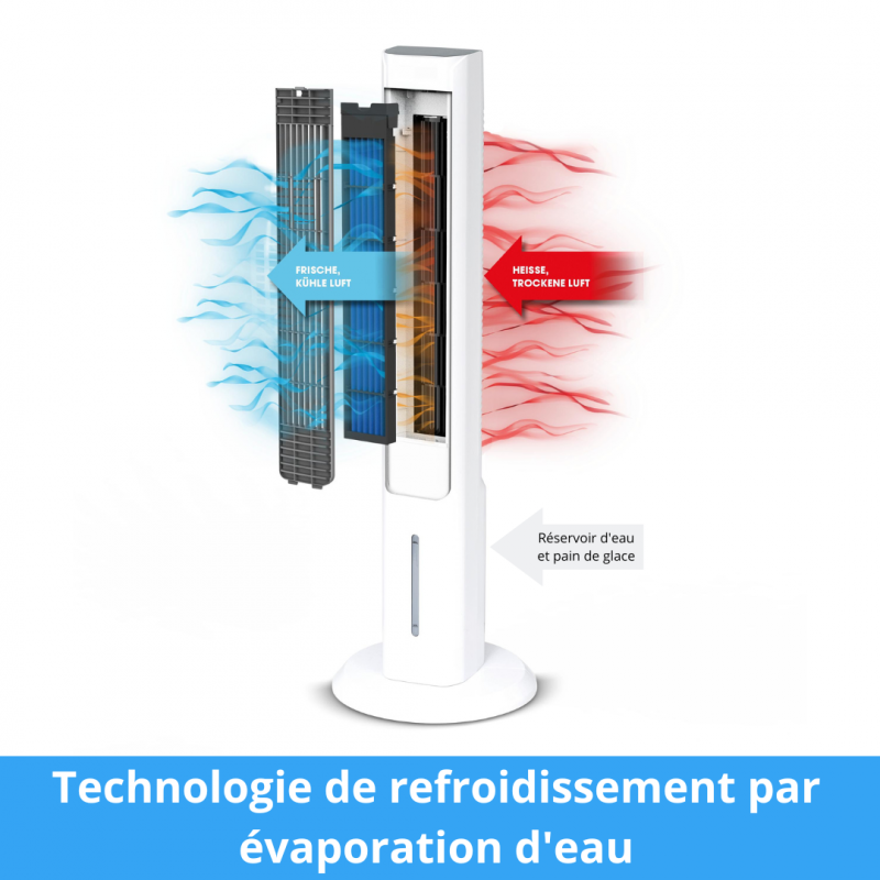 - SANS PRODUITS CHIMIQUES : Refroidisseur évaporatif avec une technique Hydro Chill ! Il vous faut simplement remplir le réservoir d'eau en plus avec pain de glace pour une performance imminente !