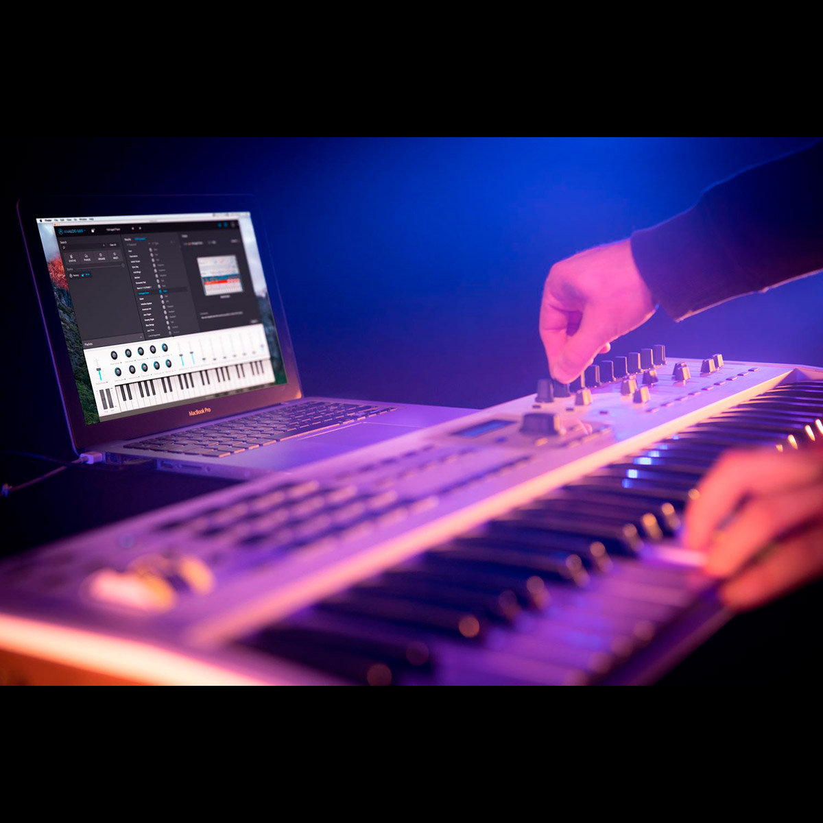 Devenus célèbres pour leurs robustesses et rapidité d’utilisation, les Keylab ont envahi aussi bien les scènes que les studios. Fort de cette expérience, aujourd’hui Arturia propose la gamme MkII offrant de nouveaux modèles d’une qualité de fabrication exemplaire, disposant d’un toucher doté d’un aftertouch et une intégration avec les logiciels inégalée. Ajoutez à tout ceci une offre logicielle hors pair et vous obtenez le meilleur que l’on puisse attendre d’un clavier maître. - Clavier 49 touches avec aftertouch - 16 pads RGB dynamiques - 9 curseurs assignables - 9 potentiomètres assignables - 16 touches de transport et contrôles DAW - 4 sorties CV pour synthés analogiques et modulaires - 1 entrée CV pour synthés analogiques et modulaires - 5 connecteurs pédales - Châssis aluminium et flancs en bois - Livré avec les logiciels Analog Lab 3, Piano V et Ableton Live Lite - Compatible Windows et MacOS X