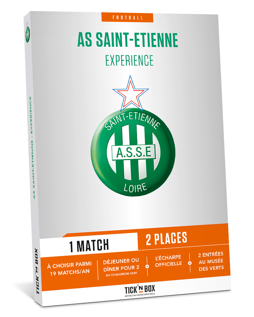 Une journée complète à Geoffroy-Guichard, quoi de mieux pour vivre sa passion Verte ? Au programme : la visite du Musée des Verts, le repas au Chaudron Vert et enfin le match au coeur du Kop Sud, habillé avec l’écharpe des Verts ! Avec Tickn'Box, assistez au match de votre choix parmi toutes les rencontres à domicile (hors matchs de coupes) Dans votre Tickn'Box, vous découvrirez : Un chèque cadeau échangeable contre 2 places pour un même match. Ce chèque permet de réserver le match de votre choix en vous connectant sur le site tickandbox.net et d’imprimer vos places directement 2 repas au restaurant du club « Le chaudron vert », sous forme de voucher échangeable 2 entrées au Musée des Verts, sous forme de voucher échangeable 1 écharpe officielle de l’ASSE, sous forme de voucher échangeable Le coffret est valable pour 2 places, 24 mois à compter de sa date d’achat. Tickn'Box est revendeur officiel de l'ASSE. Choisissez votre rencontre et vivez une expérience unique.