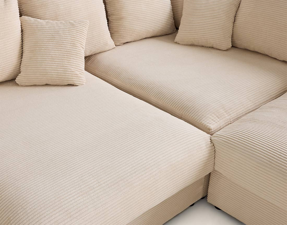 - Présentation de la collection : Craquez pour la collection Aspen : des assises profondes, moelleuses et confortables. Appréciez son revêtement en velours côtelé et ses nombreux coussins.