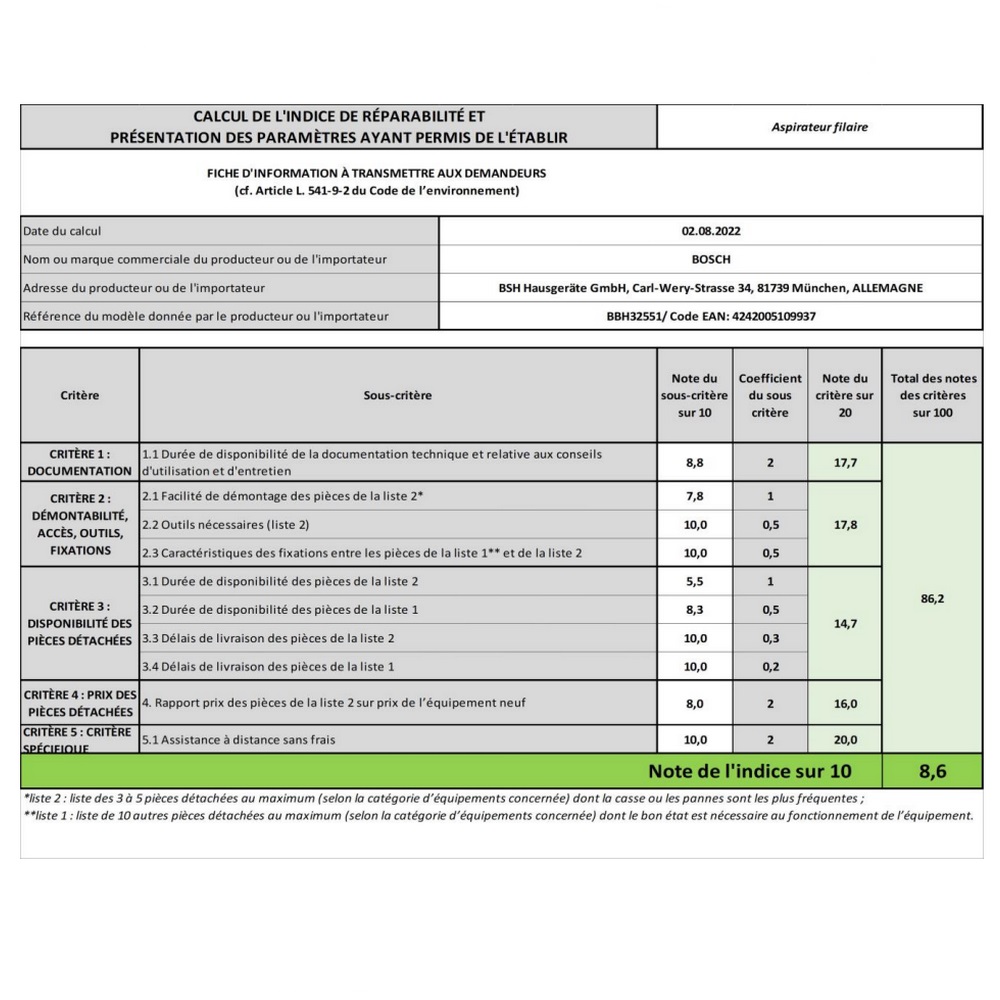 | Le produit est-il soumis à l'indice de réparabilité ? | Non |