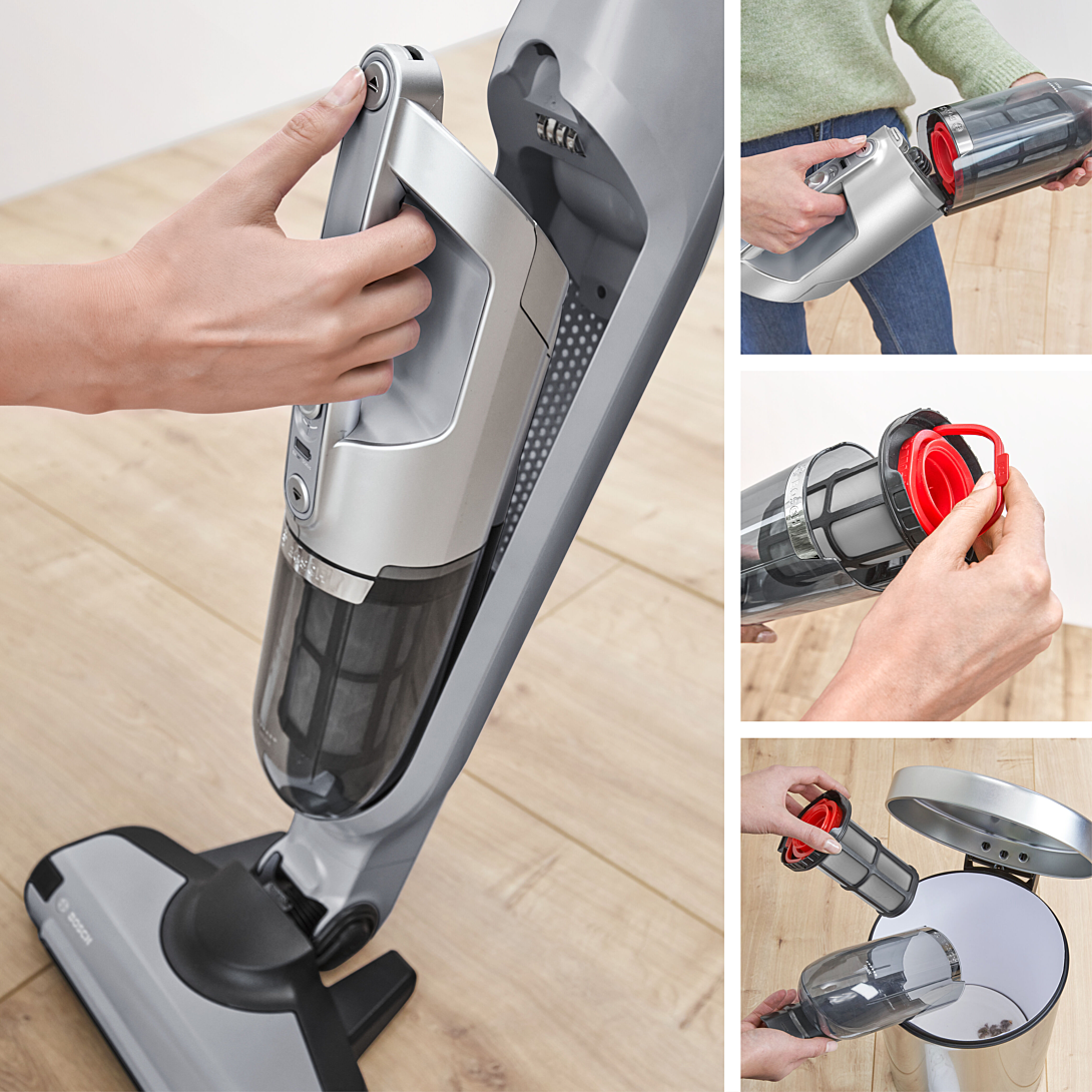 BOSCH - aspirateur balai sans fil 2en1 et multifonction Flexxo - gris - 23 V - batterie lithium - jusqu'à 50 mn d'autonomie - système de rangement tout intégré des acc. - aspirateur de table - 2 vitesses - bac 400 ml - brosse motorisée - tient debout to