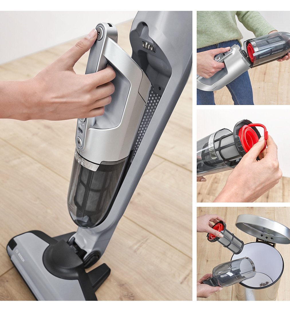 BOSCH - aspirateur balai sans fil 2en1 et multifonction Flexxo - gris - 23 V - batterie lithium - jusqu'à 50 mn d'autonomie - système de rangement tout intégré des acc. - aspirateur de table - 2 vitesses - bac 400 ml - brosse motorisée - tient debout to