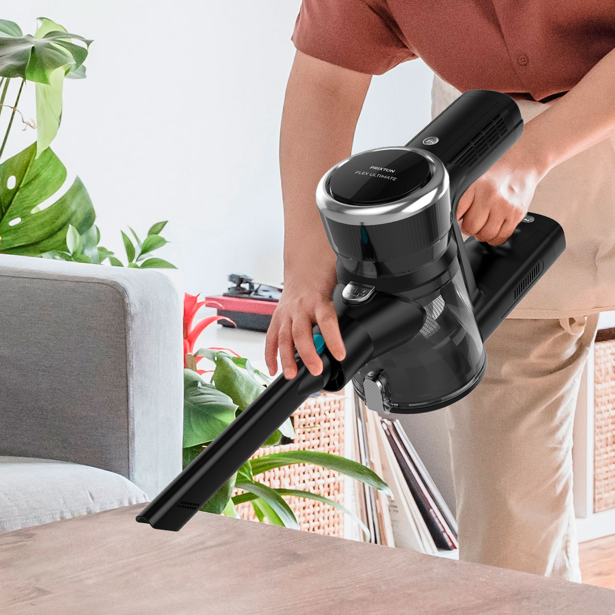 L'aspirateur balai sans fil Flex Ultimate PRIXTON dispose d'un tube flexible pour atteindre n'importe quelle partie du sol sous les meubles. De plus, il inclut également une lumière LED pour améliorer la visibilité de la poussière pour un nettoyage plus efficace.