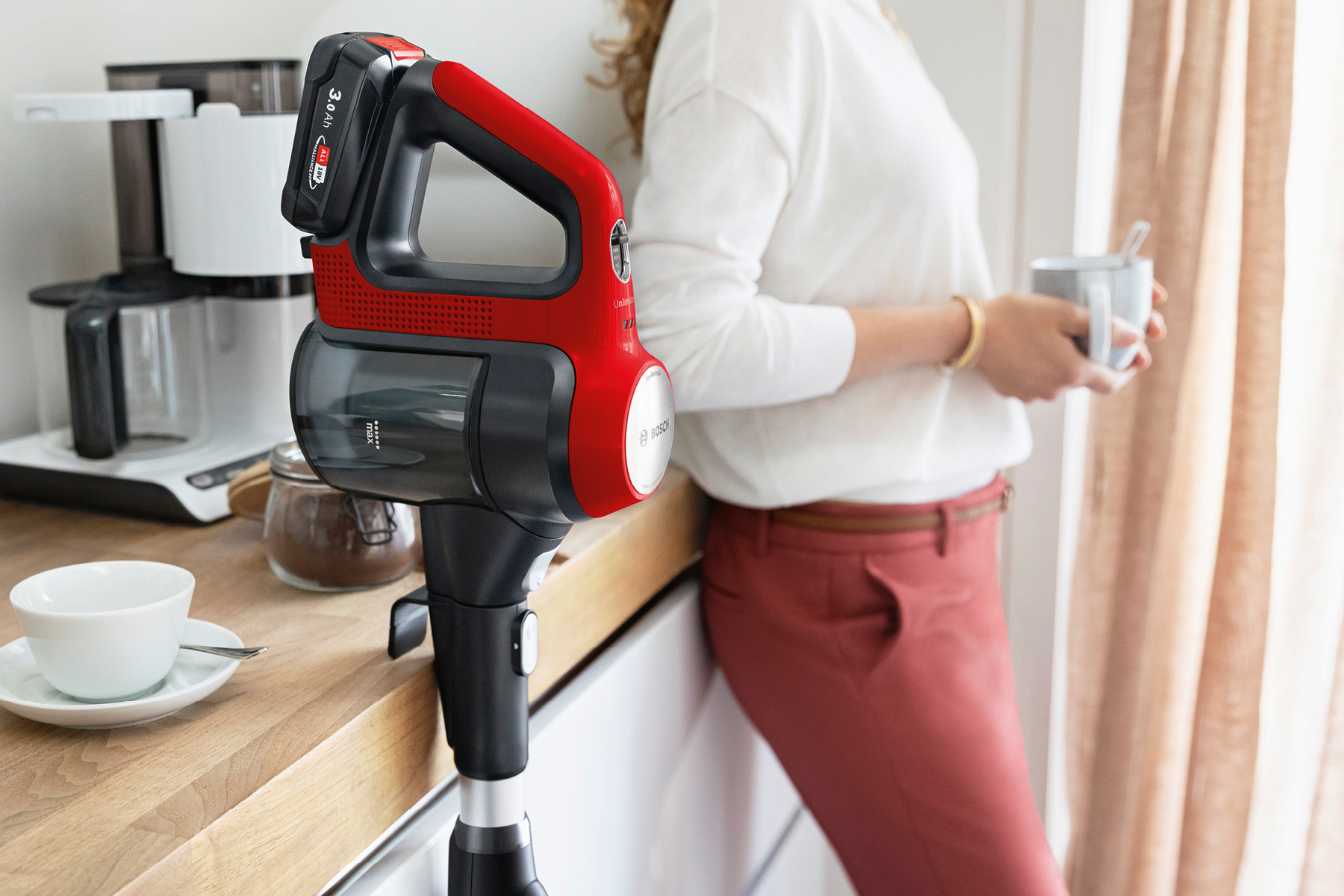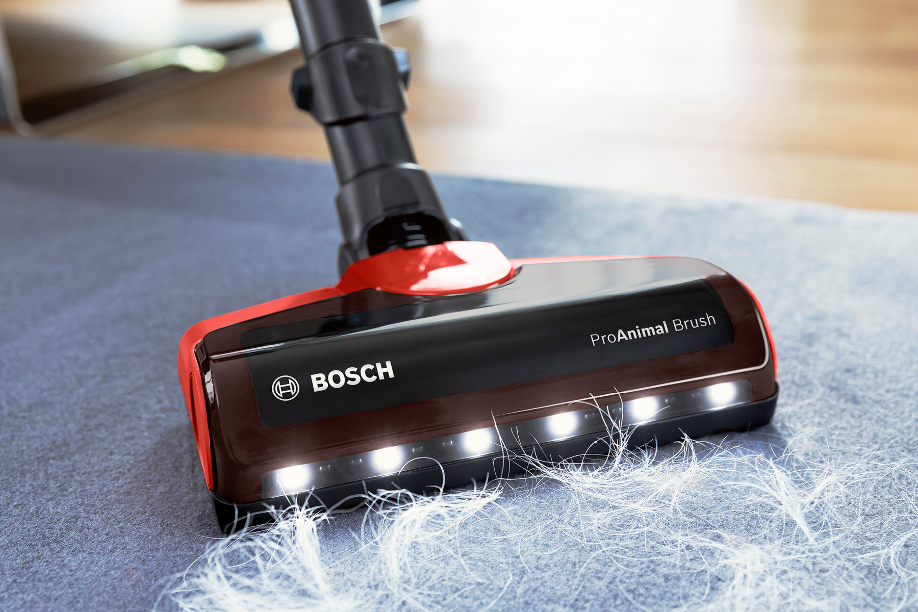 BOSCH - aspirateur balai multifonction sans fil Unlimited - ProAnimal - rouge - aspirateur à main intégré - batterie Power For All 18 V lithium- ion 3 Ah - jusqu'à 40 mn d'autonomie - brosse motorisée - brosse avec LED - brosse ameublement 2en1 - suceur radiateur long et flexible - suceur matelas - mini turbobrosse - flexible long - rouleau de brosse supplémentaire - 3 vitesses - tube flexible - design compact et léger - moteur garanti 10 ans