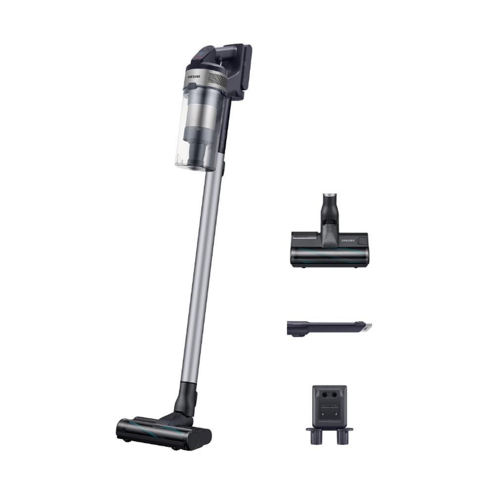 VS20B7511BF - aspirateur balai rechargeable 121.6v noir - Aspirateur balai Jet 75 VS20B7511BF de Samsung avec système de filtration HEPA : Le système de filtration multicouches en 5 couches assure un air frais. Le système multicyclonique Jet Cyclone et le filtre à particules retiennent 99,999% des poussières, y compris les particules fines comme les allergènes ou le pollen. Moteur Digital Inverter. Aspirez plus efficacement grâce à une puissance d'aspiration jusqu’à 200 AW. Le moteur Digital Inverter optimise le flux d'air grâce à ses lames soudées en aluminium. Il délivre ainsi jusqu’à 550W de puissance. Brosse motorisée Turbo Action. La brosse motorisée Turbo Action garantit efficacité et maniabilité sur sols durs, moquettes et tapis. Ses poils enlèvent la saleté incrustée pour un nettoyage en profondeur. Sa tête pivote à 180° pour vous permettre d’atteindre tous les angles. Retirer le rouleau d’un clic pour le nettoyer facilement. Batterie longue durée remplaçable. Profitez d'un temps d'utilisation optimal sans recharge additionnelle. La batterie Samsung permet une utilisation standard jusqu'à 60 min. Vous pouvez facilement détacher et remplacer la batterie. Liberté d’instaLLation et de stockage Stockez et recharge. Stockez et rechargez votre aspirateur avec plus de flexibilité grâce à la station de chargement 2-en-1. Vous pouvez la fixer au mur ou tout simplement l'utiliser indépendamment. - Type : Aspirateur balai.