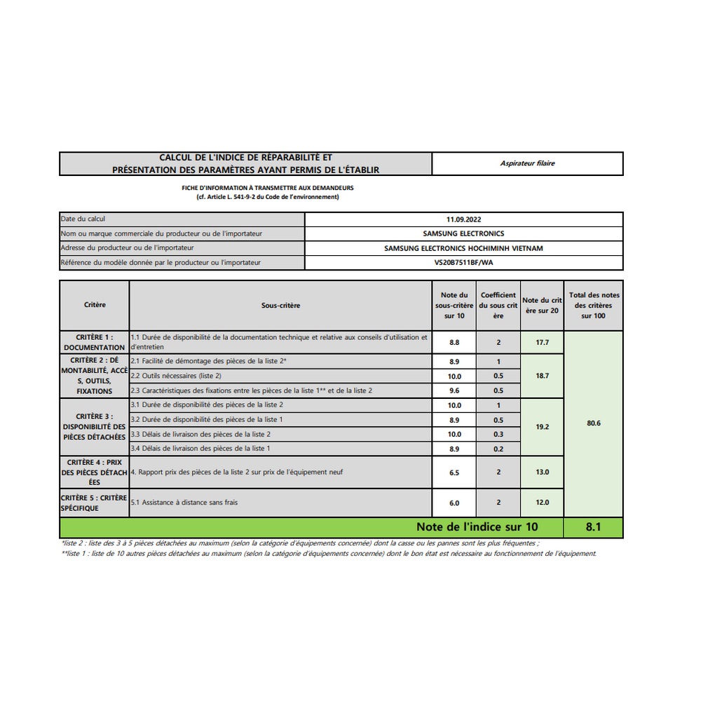 | Le produit est-il soumis à l'indice de réparabilité ? | Non |
