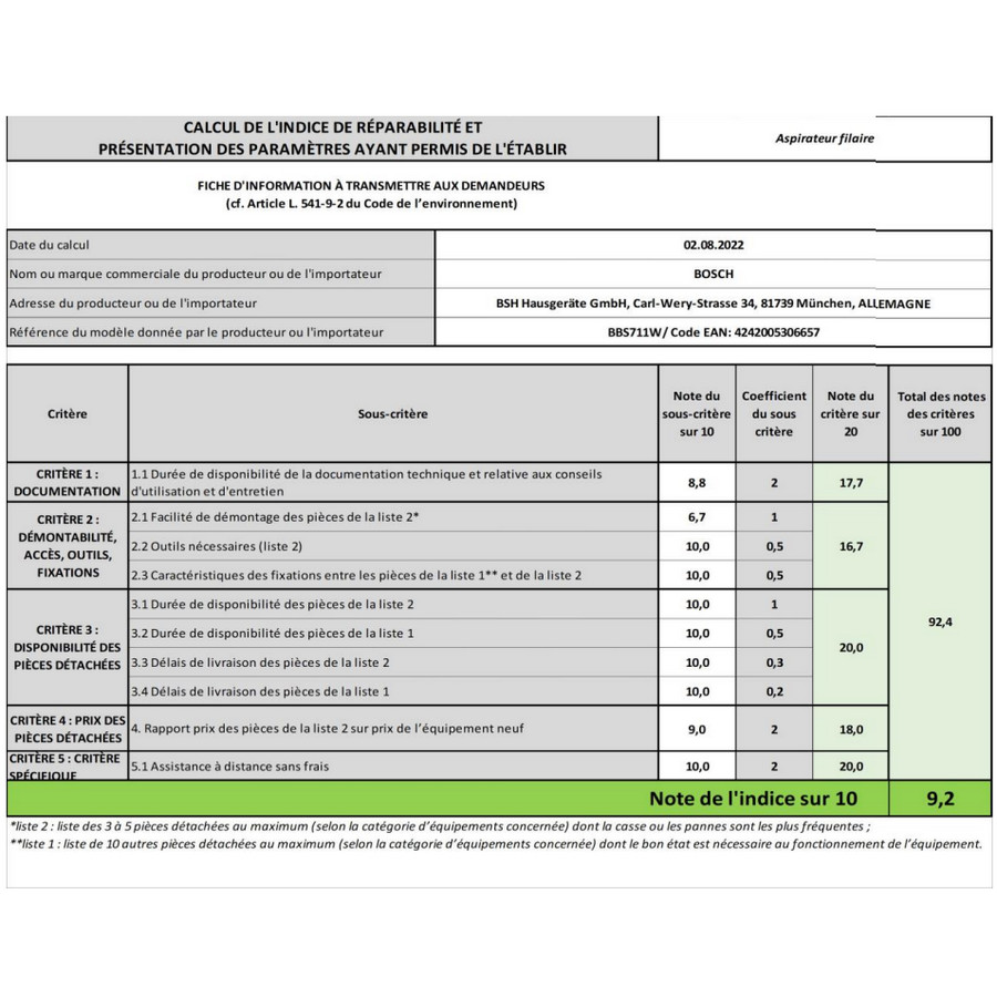 | Libellé | Aspirateur balai rechargeable 18v blanc unlimited 7 - BBS711W - bosch |