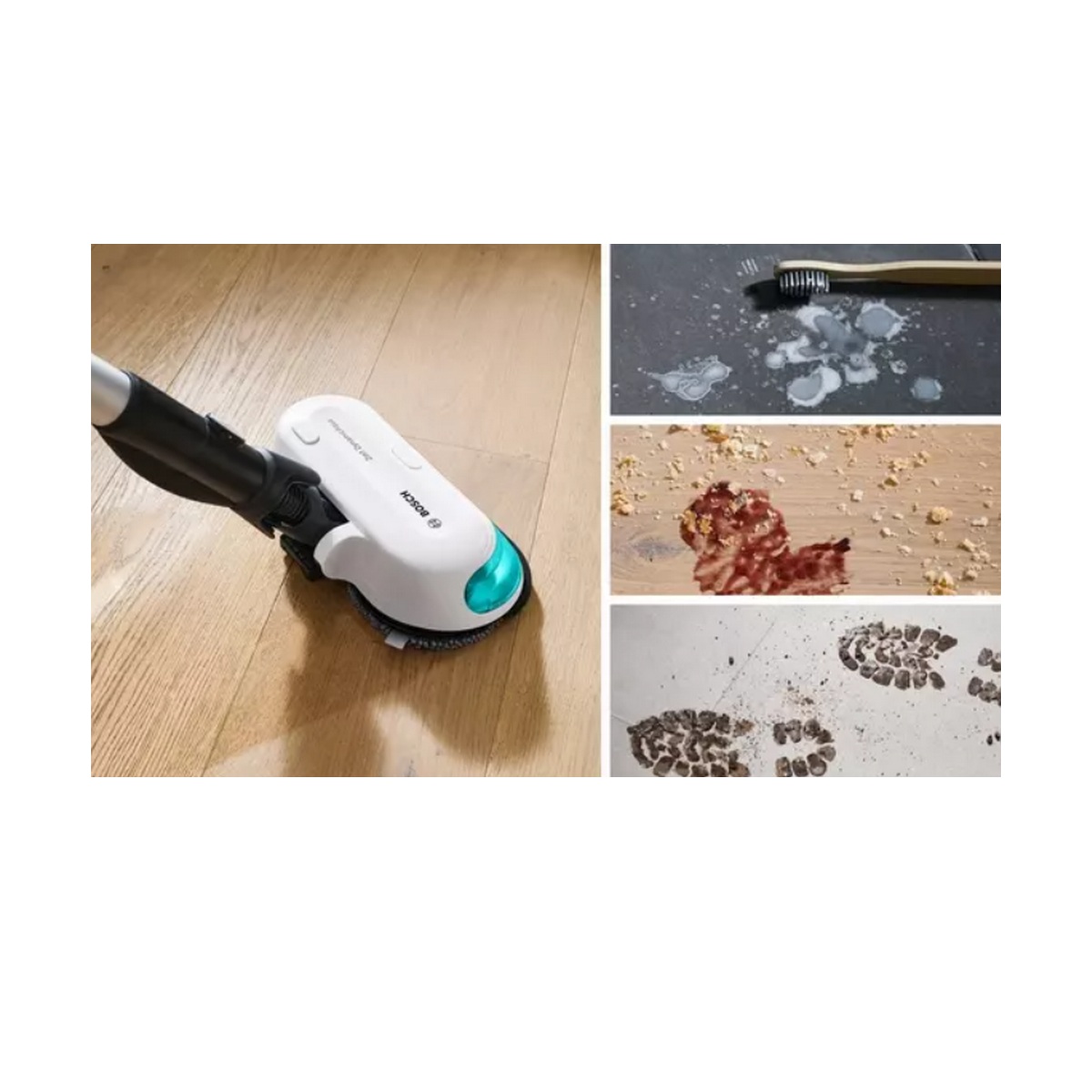 BCS71HYG1 - aspirateur balai rechargeable 18v blanc - Aspiration puissante et nettoyage en profondeur en un seul passage Unlimited 7 ProHygienic Aqua de Bosch BCS71HYG1.