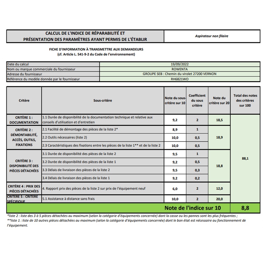 Indice de réparabilité 8,8 / 10