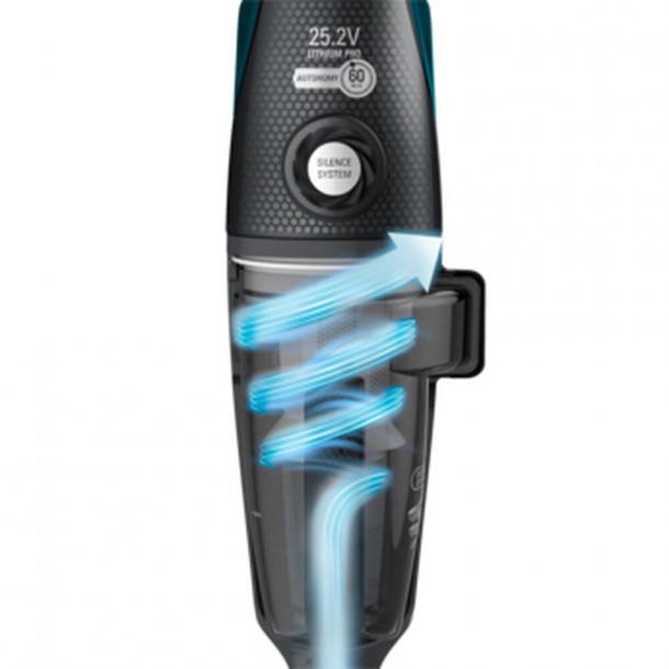 rh9152wh - aspirateur balai rechargeable 25.2v bleu/gris - Aspirateur balai rechargeable Air Force Serenity Rowenta RH9152WH. Un aspirateur balai qui associe la technologie anti-bruit (72 dB) à de hautes performances de nettoyage. Technologie sans sac cyclonique : séparation de l'air et de la poussière. Bac à poussière 0.5 L amovible avec trappe de vidange. Brosse d'aspiration Delta haute performance. Electrobrosse amovible pour un nettoyage facile. Filtre mousse lavable à l'avant du moteur. Position parking intégrée : tient debout seul sans socle. Une autonomie de 60 min (en position mini) pour nettoyer les pièces de la maison. - Type de produit : Aspirateur balai.