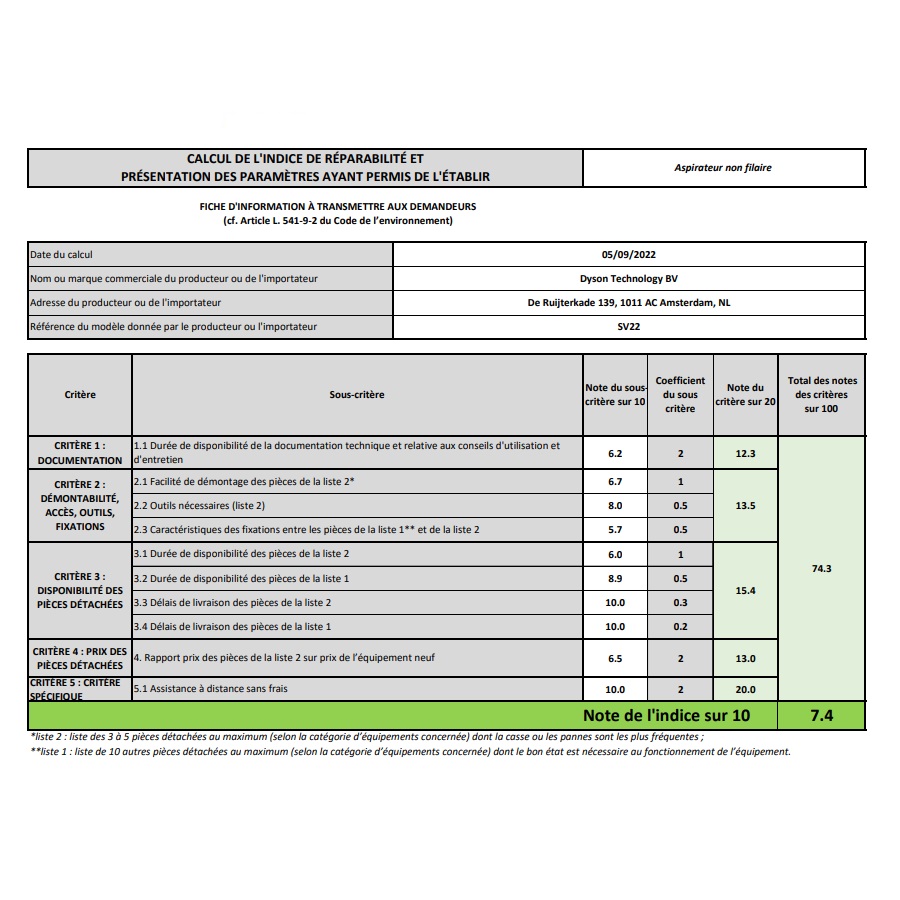 Le produit est-il soumis à l'indice de réparabilité ? Non
