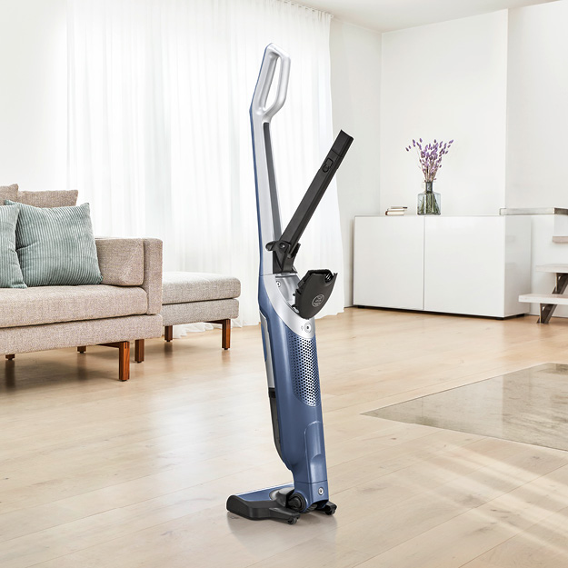 BOSCH - aspirateur balai sans fil 2en1 et multifonction Flexxo - bleu métallisé - 28 V - batterie lithium -  jusqu'à 55 mn d'autonomie - système de rangement tout intégré des acc. - aspirateur de table - 2 vitesses -  bac 400 ml - brosse motorisée - tient debout tout seul - brosse avec LED - suceur radiateur XL - suceur ameublement 2en1 + petite brosse