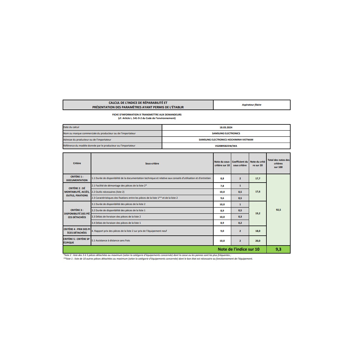| Libellé | Aspirateur balai sans fil 25.2v 580w blanc - VS20B95823W - samsung |