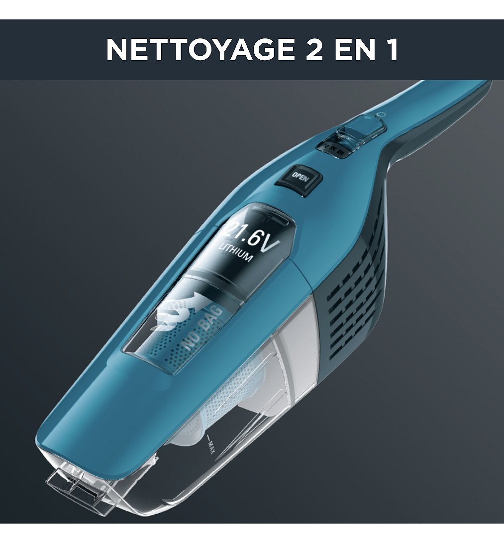 rh6751wo - aspirateur balai 2en1 rechargeable 21.6v - Aspirateur balai 2en1 rechargeable Dual Force Rowenta RH6751WO pour un nettoyage partout en un rien de temps !Découvrez Dual Force 2 en 1 : un aspirateur sans fil et un aspirateur à main intégré dans un seul appareil, facile à utiliser, pour un gain de temps et pour un confort optimal lors de vos séances de ménage. Sa tête d?aspiration est dotée d'une brosse motorisée et de LEDs pour une meilleure vision au sol. Sa batterie Lithium-ion longue durée vous offre une autonomie allant jusqu'à 45 minutes (en position minimum). Enfin son design ultra-léger permet un nettoyage sans effort et en un rien de temps.Aspirateur balai 2 en 1 pour un nettoyage partour en un rien de tempsSimplifiez-vous la vie avec un aspirateur balai sans fil combiné à un aspirateur à main : un ménage sans effort et tout en légèreté, sans fil ni contraintes, partout où vous en avez besoin.Brosse motorisée avec éclairage par LEDsObtenez une meilleure visibilité dans les zones faiblement éclairées ou en dessous des meubles, pour un ménage efficace et en toute simplicité, adapté à tous types de sols.Ultra-léger pour un confort optimalDual Force 2en1 est ultra-léger. Son ergonomie améliorée apporte un confort maximal à vos séances de nettoyage, avec des fonctionnalités intelligentes telles que la position parking ou sa poignée facile à prendre en main.Poignée pliable pour un rangement facilePour compléter cette combinaison idéale d'un aspirateur balai sans fil et d'un aspirateur à main, l?appareil possède une poignée pliable, pour un rangement sans effort et très pratique.Longue autonomieSon autonomie de 45 minutes (en position minimum) est idéale aussi bien pour des sessions de nettoyage de dernière minute que pour des sessions longue durée.Des performances longue duréeIl est équipé de la batterie dernière technologie 21,6 V Lithium-ion.Un nettoyage parfaitSon système cyclonique assure une séparation optimale de l?air et de la poussière.Un nettoyage sans effortCet aspirateur balai sans fil compact et ultra-léger pèse seulement 2,5 kg pour un nettoyagefacile et sans effort. - Aspirateur balai sans fil : 2 en 1.