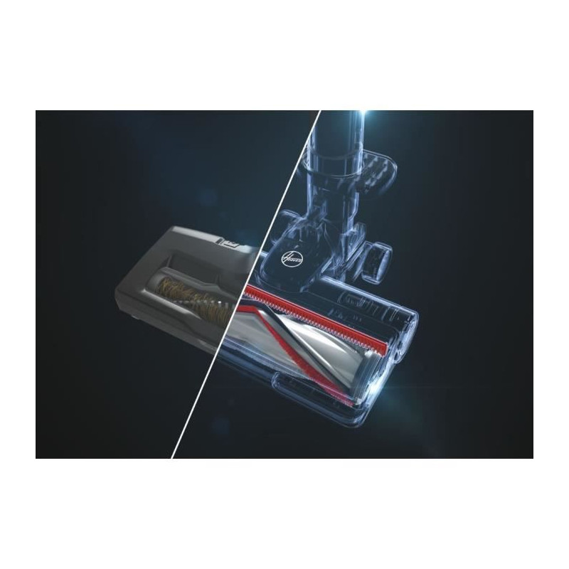 L'aspirateur balai multi-fonction HF9 Home de Hoover est équipé d'une batterie amovible 21.6V Lithium, d'un moteur brushless de 350W, et d'un réservoir de 0,7L. Puissance maximale de 130AW, autonomie maximale de 30 minutes. Écran LED, technologie ANTI-TWIST et éclairage LED. Position Quick Park&Go. Accessoires : suceur plat, accessoire 2en1, support mural.
